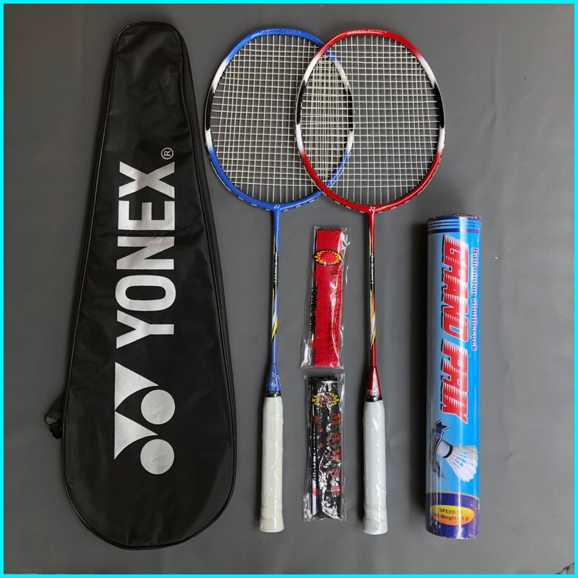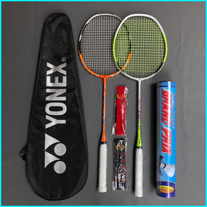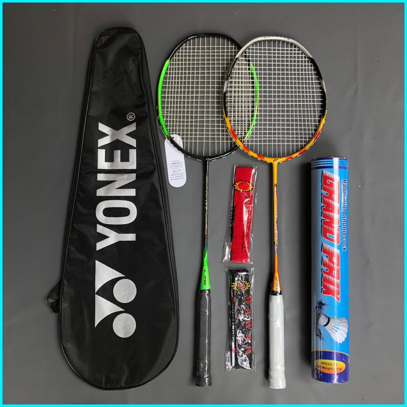 Raket Badminton Paket Lengkap Isi 2 Raket 2 Handgrip 1 Tas 1 Shuttlecock Packing Kayu Bambu Bubble Warp