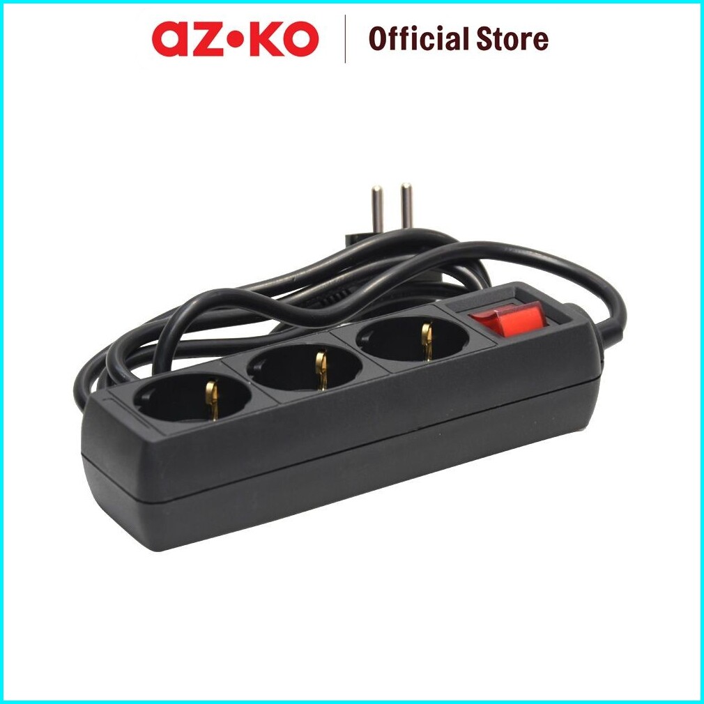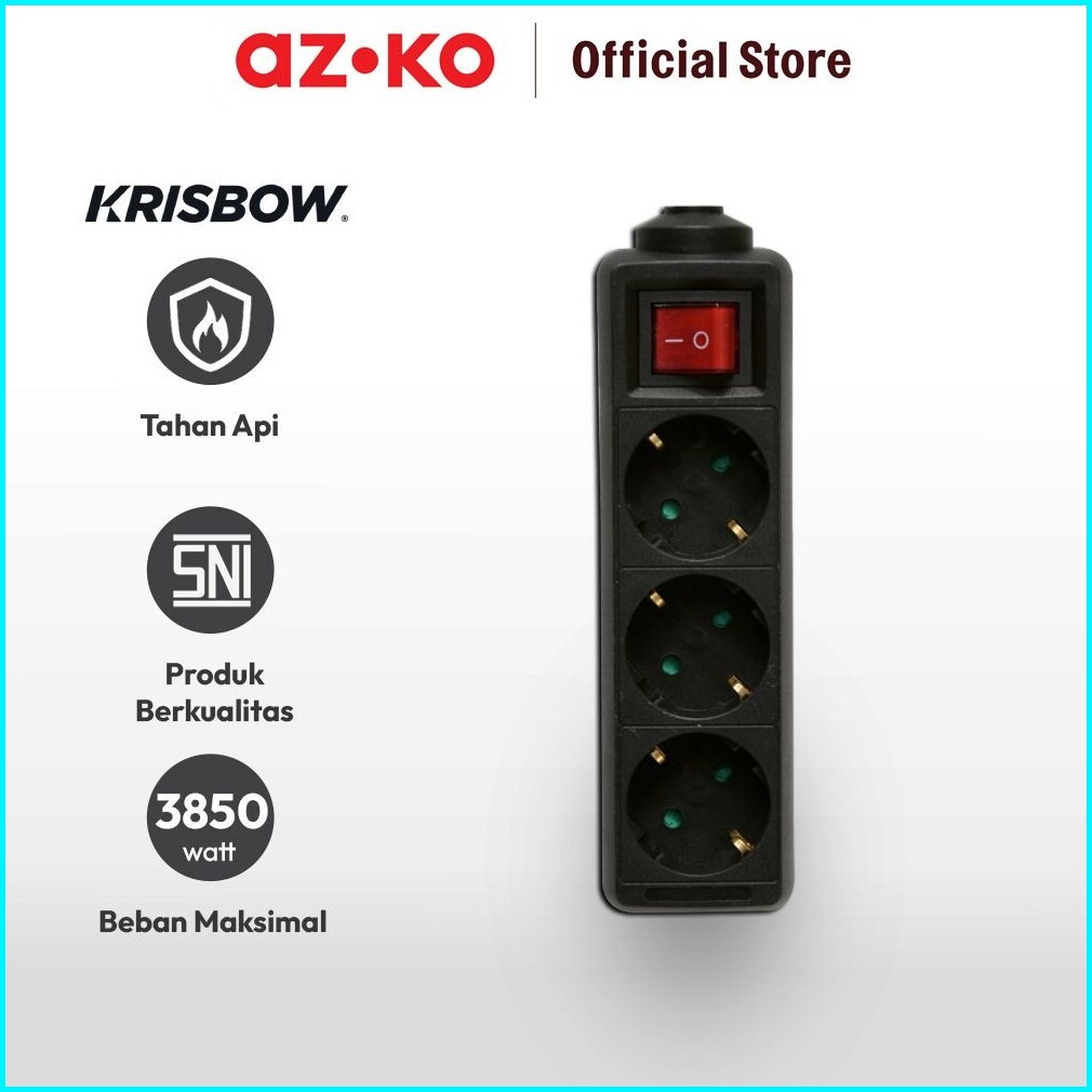 Azko Krisbow Stop Kontak 3 Socket Kf-b-03kp - Hitam Electric Socket Terminal Colokan Listrik Peralatan Elektronik Extens