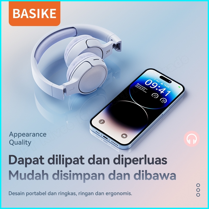 Basike Headphone Wireless Bluetooth Headset Gaming 9d Hifi Music Stereo Bass Makaron Original