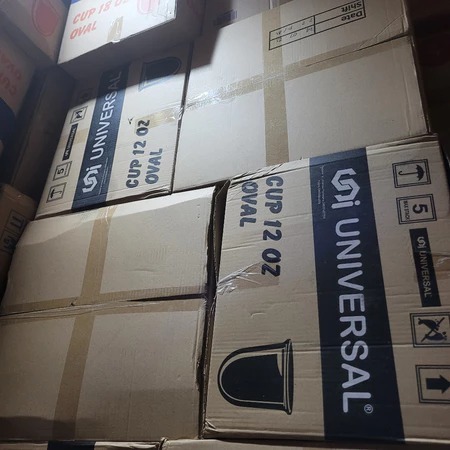 GROSIR 1 KARDUS GELAS OVAL UNIVERSAL Gelas Plastik Merk Universal 22 Oz Oval 1 Dus Isi 20 Slop = 1.000 Pcs