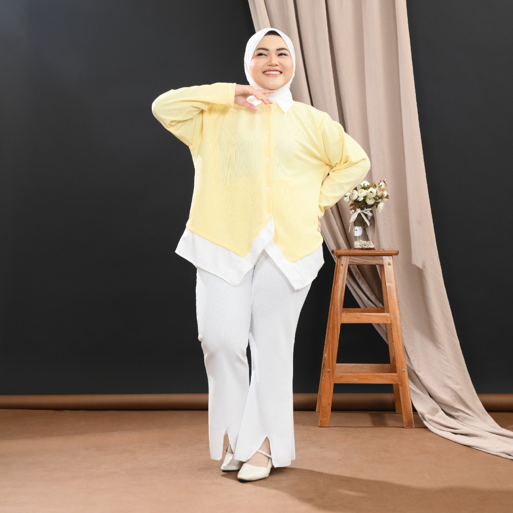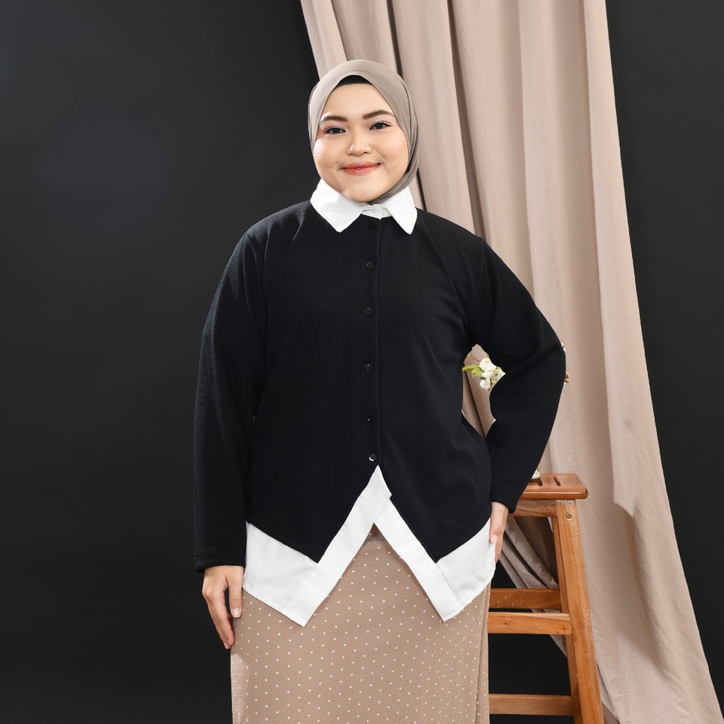 Siselyo Nella Kemeja Layer Cardi Kombinasi Atasan Wanita Bigsize 2 in 1