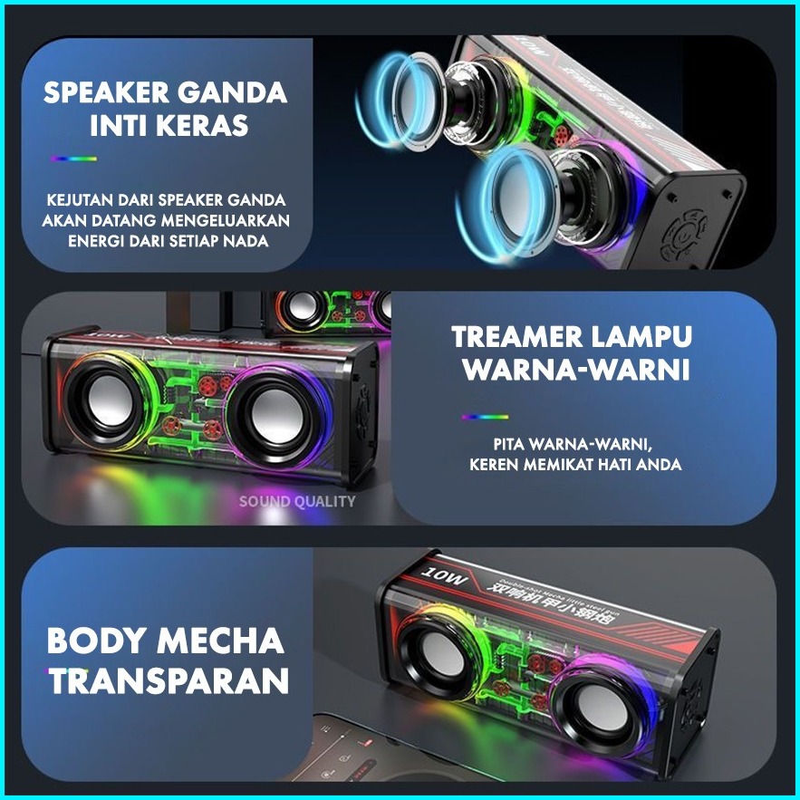Sonix Speaker Bluetooth 10w Sk01 Transparan Wireless Rgb Led Light Spiker Tws Portable Double Cyberpunk Subwoofer Mech S