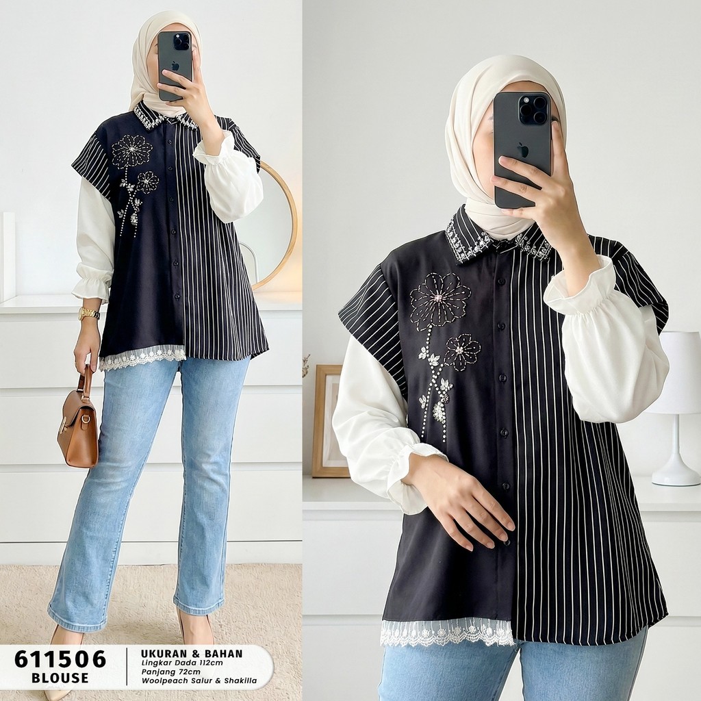 EXTU HERITAGE - Amanda Blouse Wanita Woolpeach Salur Shakila Best Seller Busui Jumbo - 611393, 611385, 611390, 611506