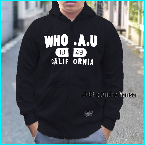 Jaket Hoodie Who.au California 1849 Zipper Cream Pria Wanita Premium Quality