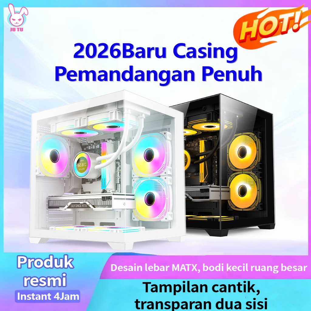 Jutu Casing Komputer Casing Motherboard M-Atx Lampu Rgb Gaming Transparan Sisi Desktop