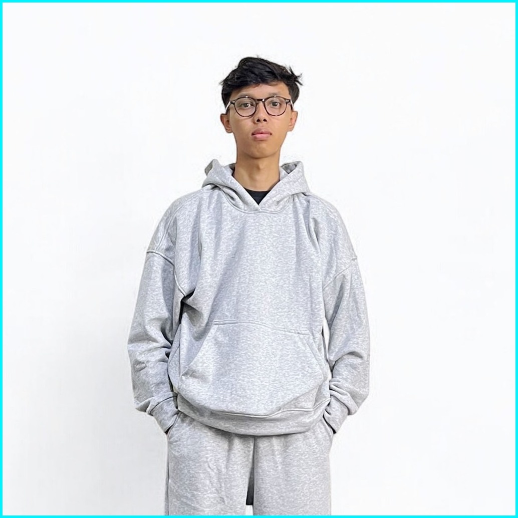 Erfolgreich - Hoodie Boxy Oversize Hitam Pria Wanita Cotton Fleece Tebal 300 330 Gsm Boxy Fit Polos Cotton Fleece Heavyw