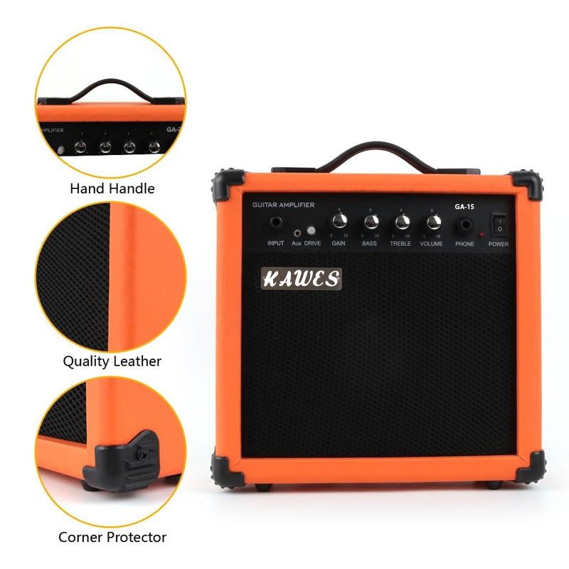 Kawes Speaker Gitar Listrik Amp 15 Watt Amplifier Gitar Daya Amp Dengan Efek Distorsi