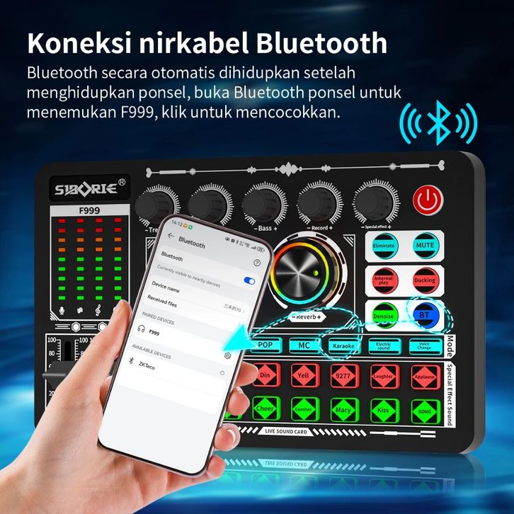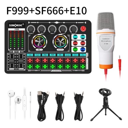 Siborie F999 soundcard+SF666 mic paket lengkap Full SET 100% Original