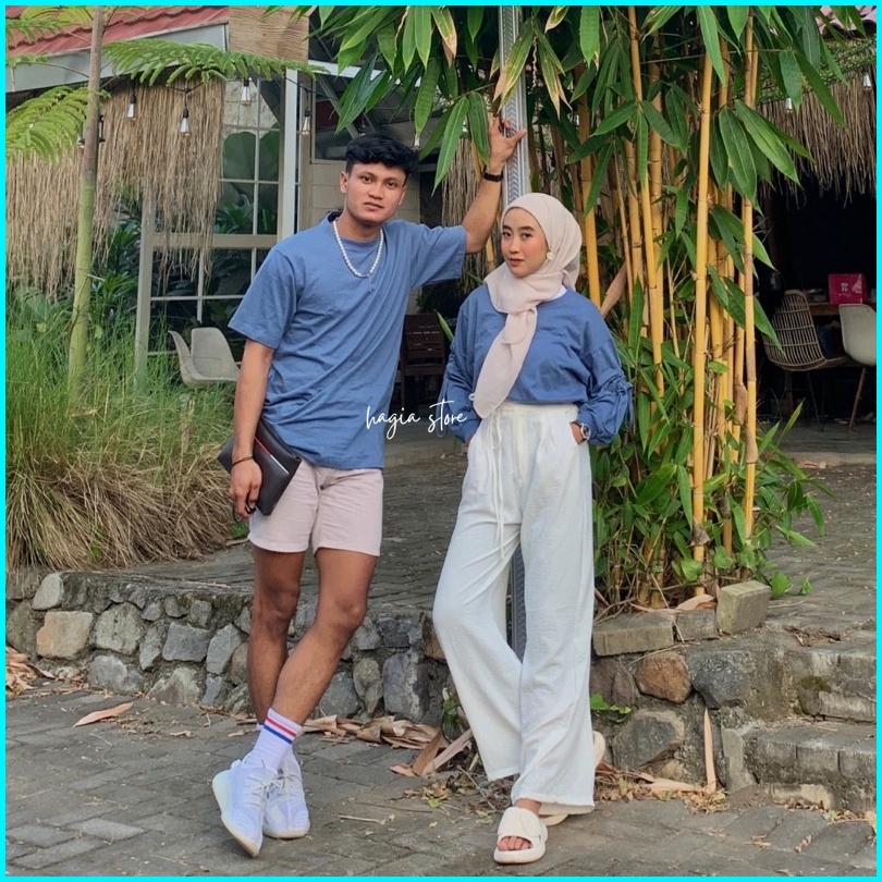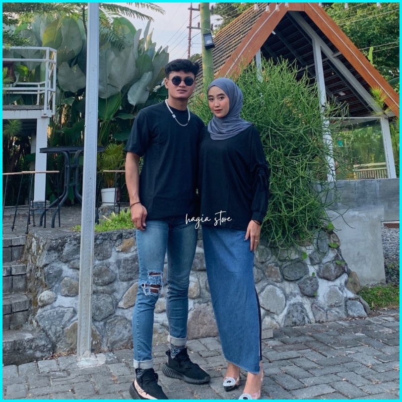 Nora Couple By Hagia Sudah Sepasang Blouse Serut Wanita Dan Kaos Pria Polos