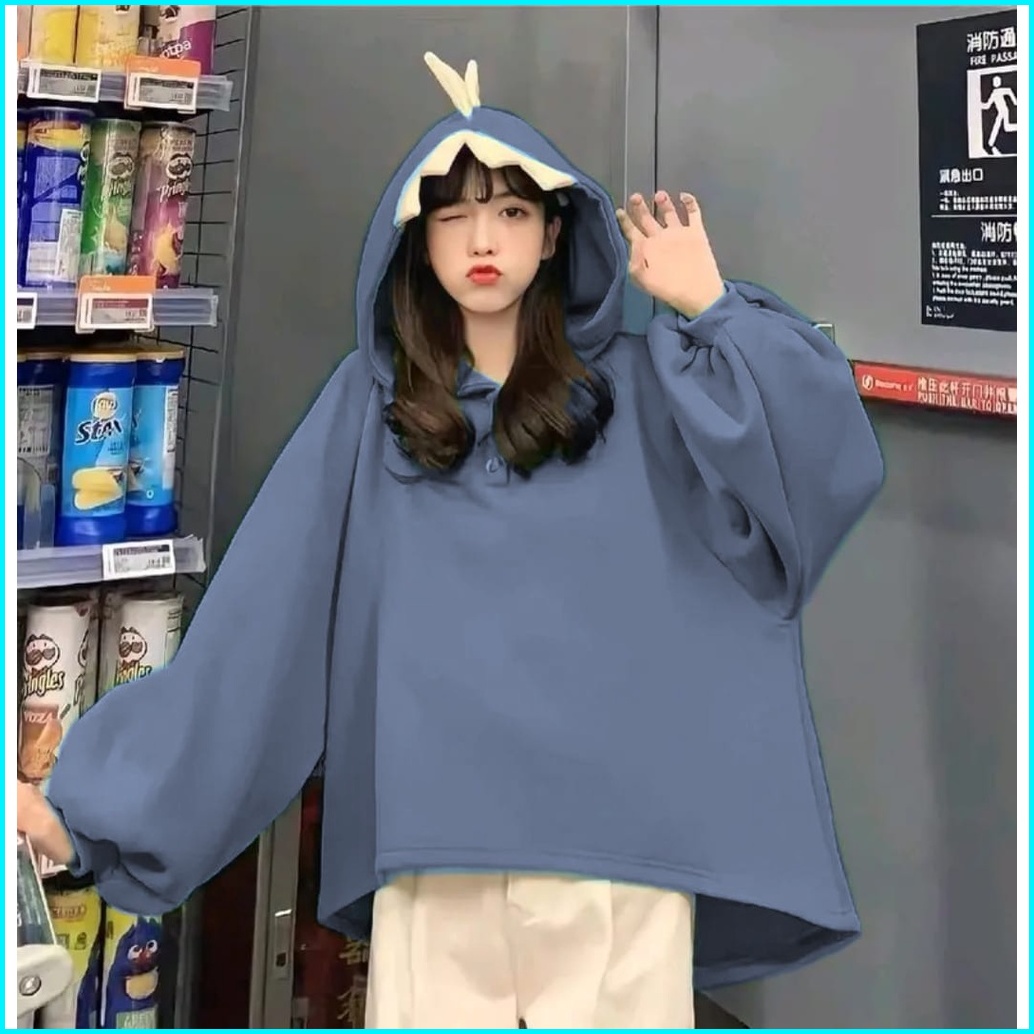 Dinos Sweater Hoodie Ovrsize Wanita Korean Style Hodie Lucu