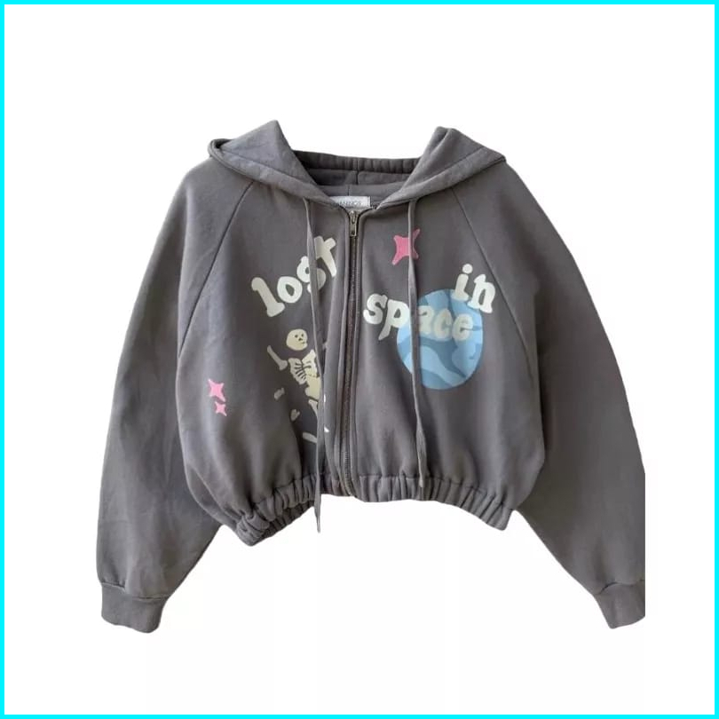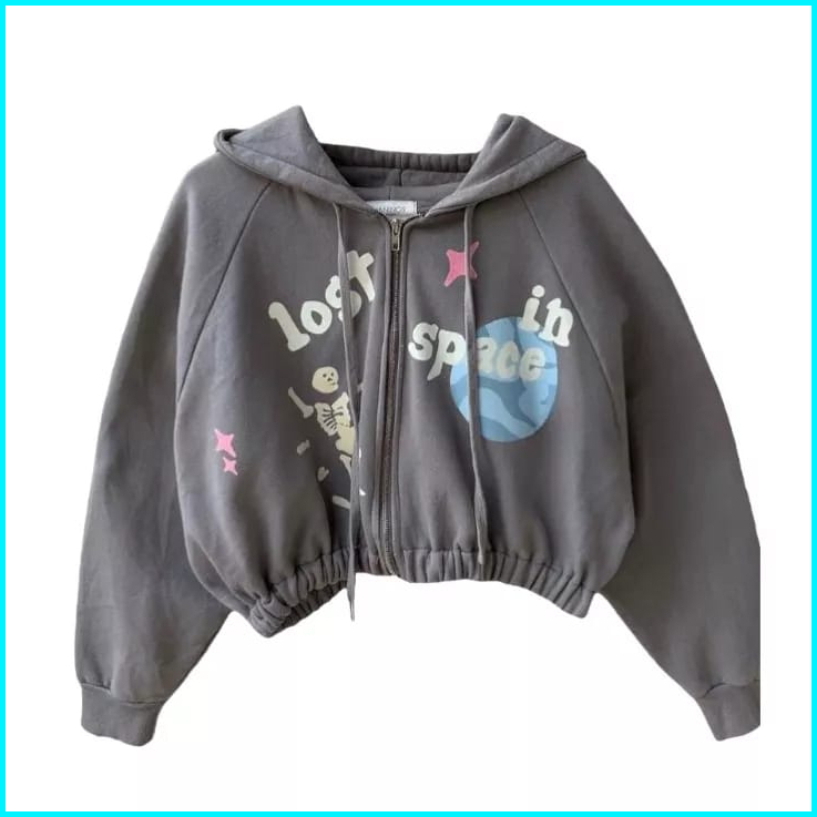 Space In Jaket - Jaket Crop Zipper Hoodie Wanita - Jaket Wanita