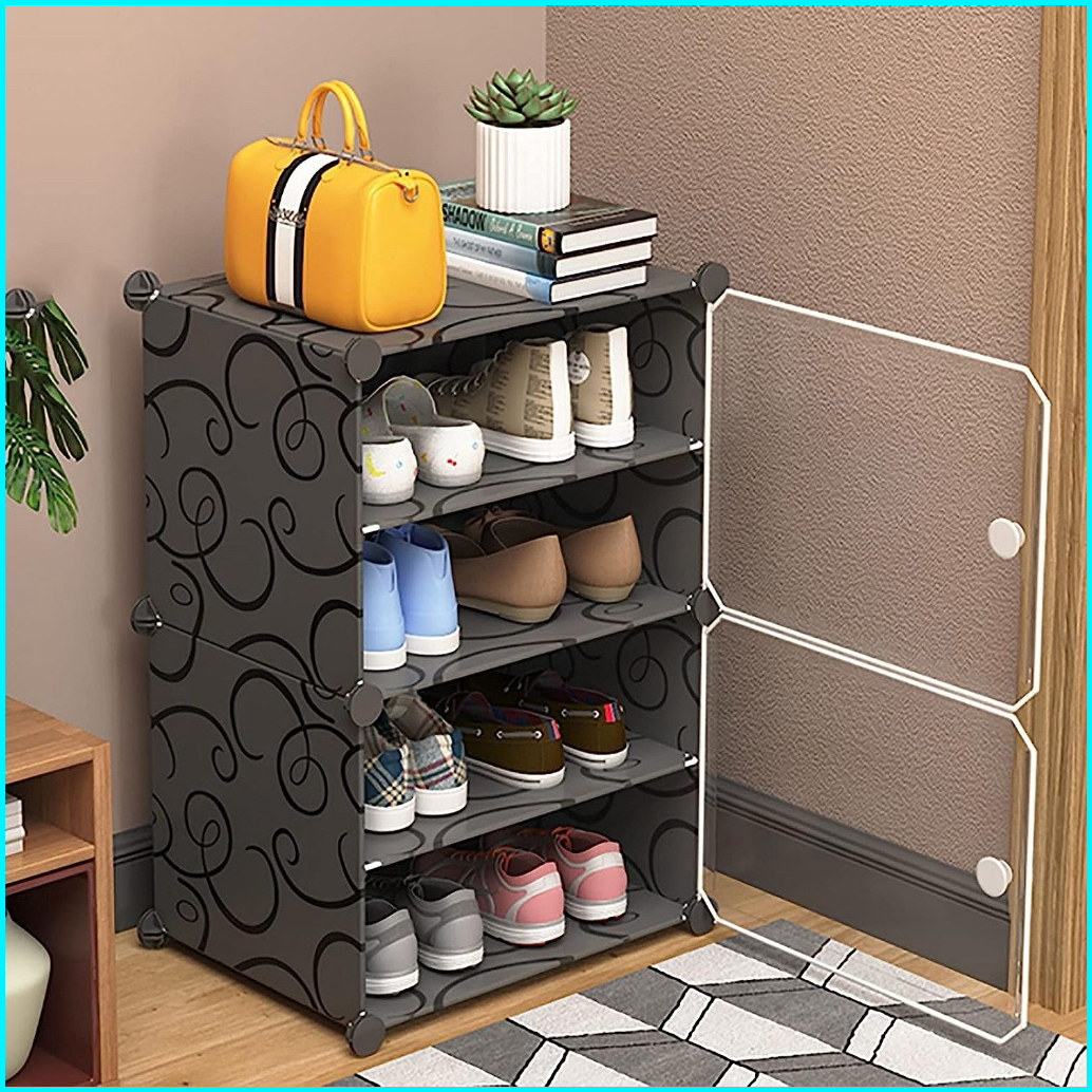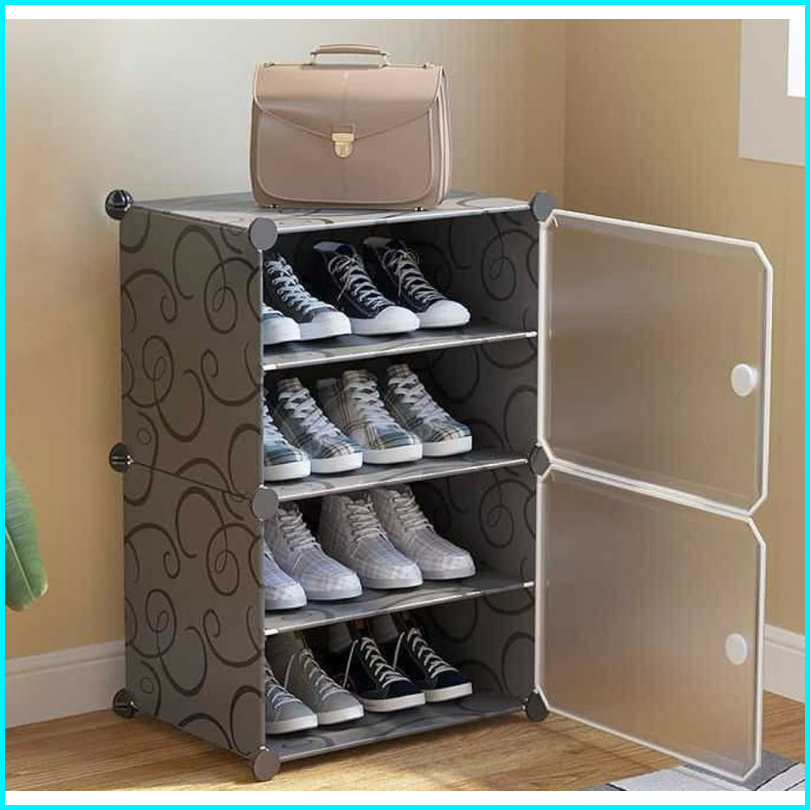Lemari Sepatu Plastik Tertutup Rak Sepatu Minimalis Serbaguna Sandal Portable 4 Susun