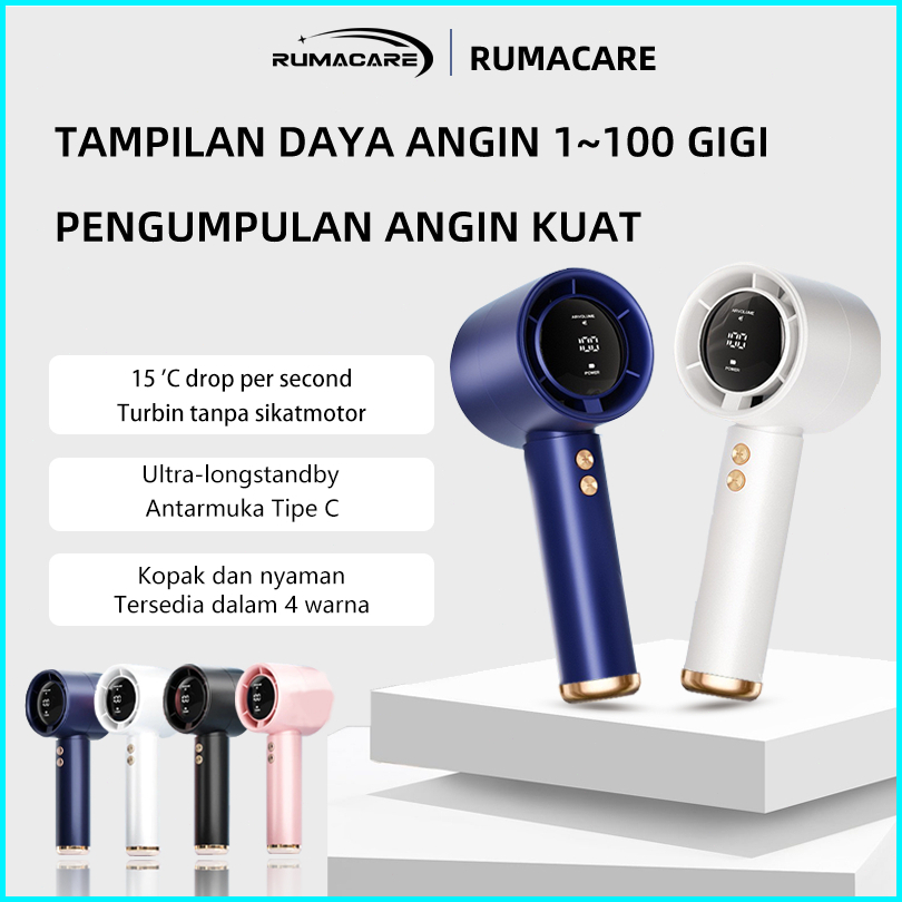 Rumacare Mini Kipas Strong Portable Strong Wind 100 Gear Wind Speed Kipas Kipas Angin Turbo Digital Display Adjustable K