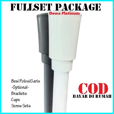 Batang Tiang Besi Gorden Pipa Aluminium Garis Bracket 1mm Cup Platinum Full Set Hitam Putih