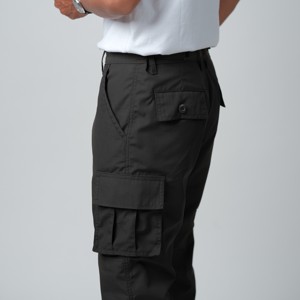LIAN - Loosey Goosey Loose Cut Long Cargo Pants Mid Night Black Ripstop
