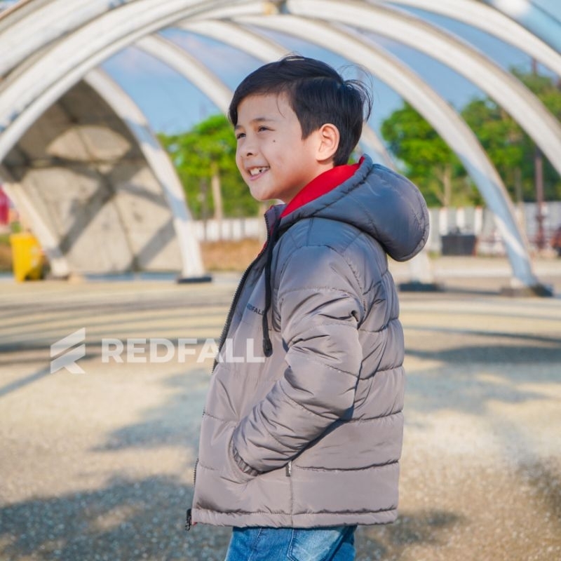 Jaket Puffer Anak Laki Laki Rdfll Premium Bolak Balik - Abu X Merah
