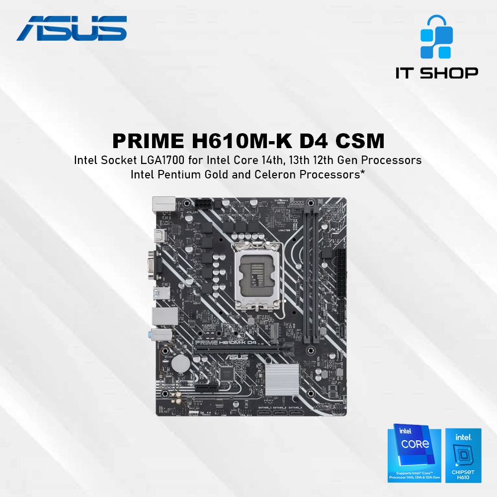 Motherboard Asus Prime H610M-K D4 Csm - Lga1700 - Intel Gen 12, Gen 13, Dan Gen 14