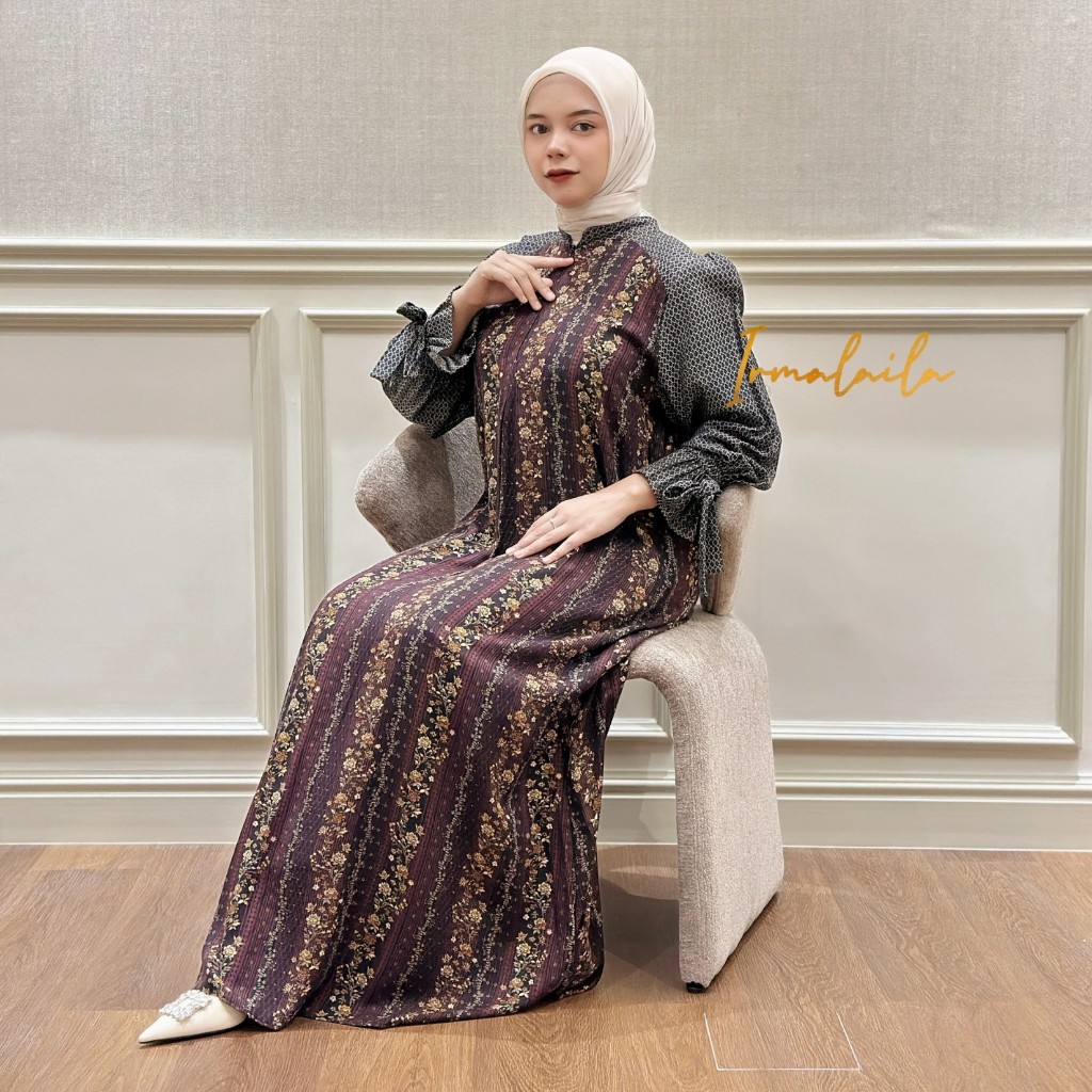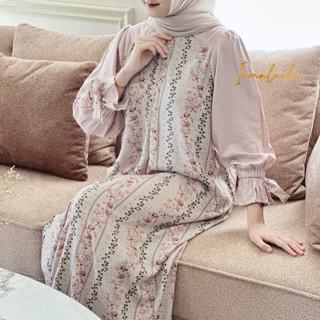 Ellena Dress Gamis Wanita Rayon Motif Mix Rayon Jaguard Lembut Adem Nyaman Daily Bumil dan Busui Friendly By Irmalaila