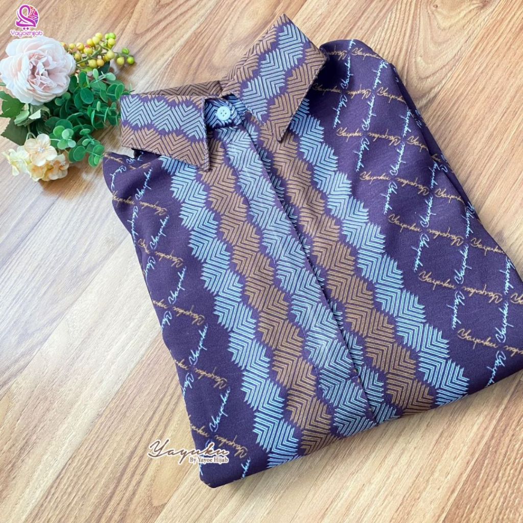 Malika Dress Gamis Kemeja Motif Monogram Elegan Bahan Premium Adem Nyaman Dipakai Seharian Look Mewah dan Simple Yayuku by Yayoe Hijab