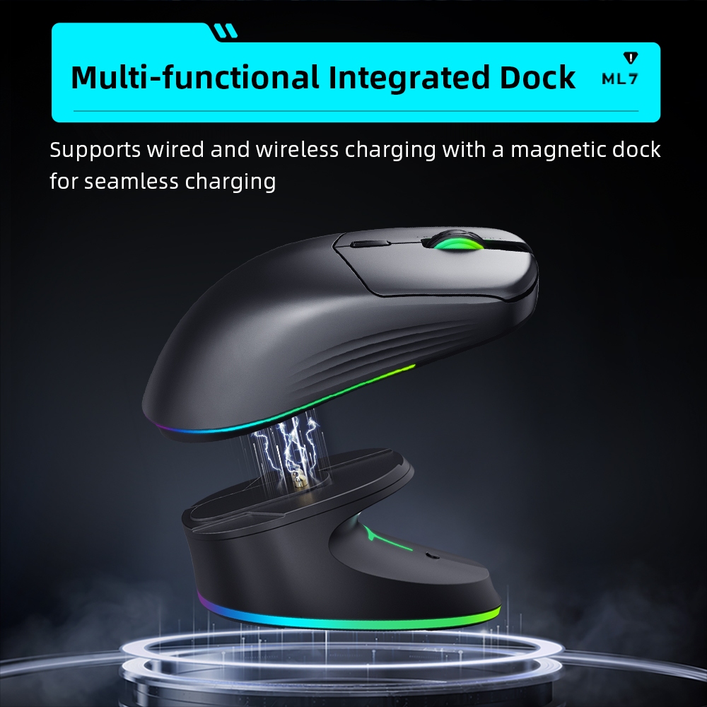 Mouse Gaming Thunderobot Ml7 Dengan Dock Pengisian Daya Baterai Tahan Lama Mouse Nirkabel Bluetooth Tri-Mode Paw3311 Pen