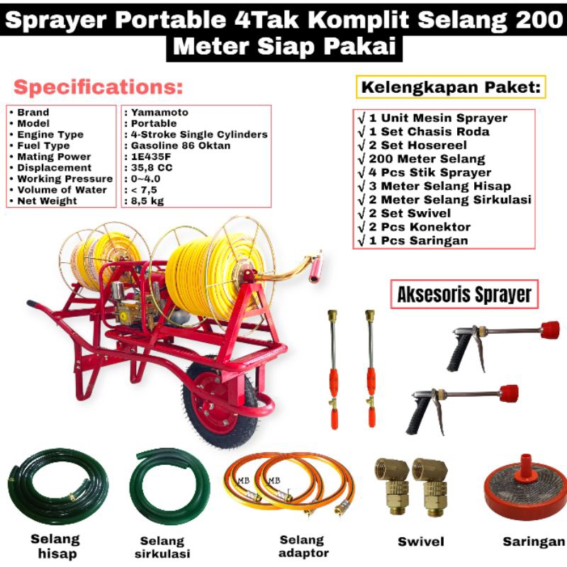 Sprayer Portable 4Tak Komplit Selang 200 Meter Siap Pakai Bensin Murni