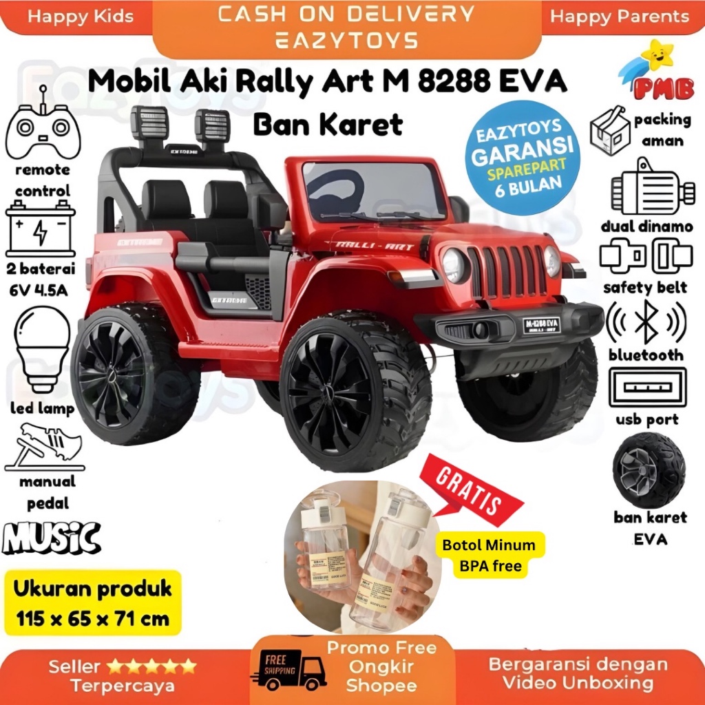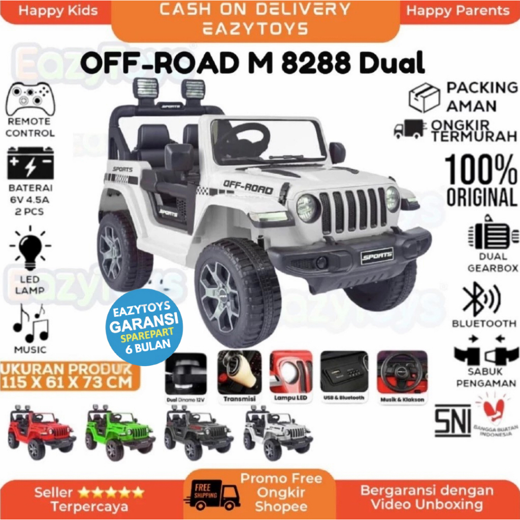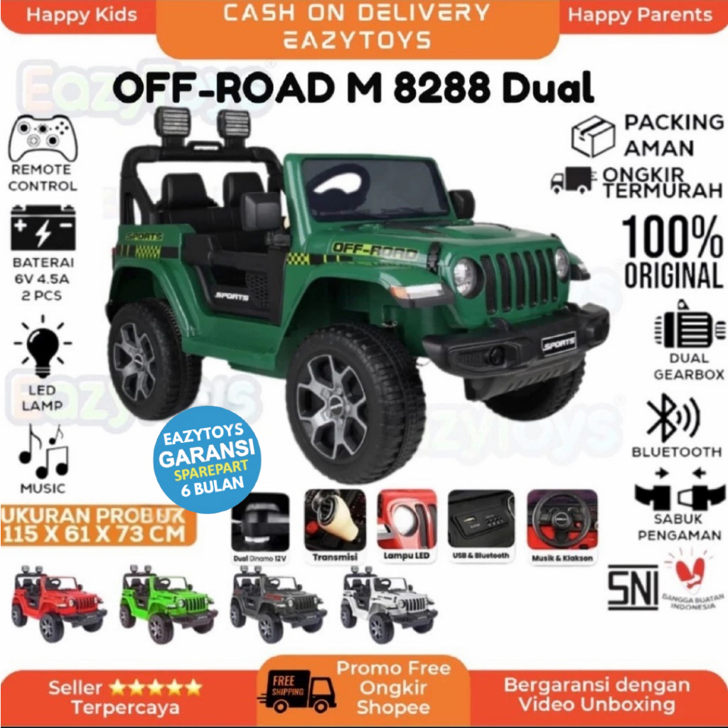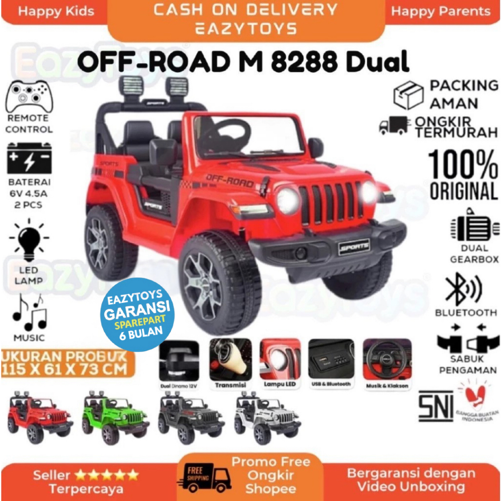 Mainan Mobil Aki Anak PMB M8288 Dual Motor Jeep Rubicon OFF ROAD REMOTE CONTROL