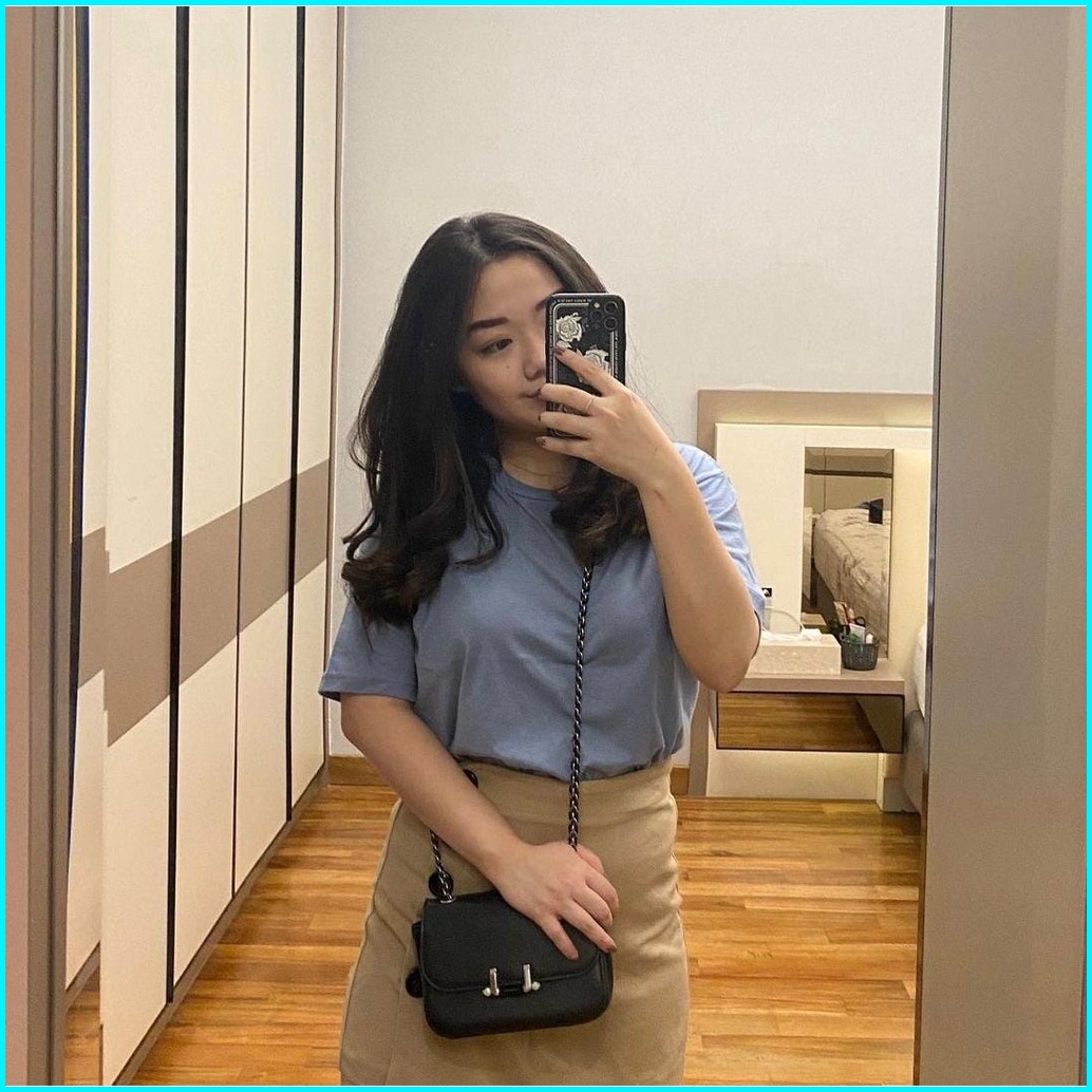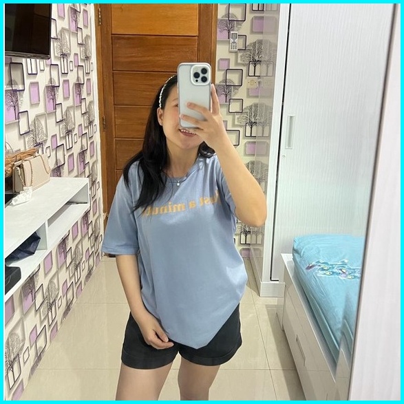 Kaos Dusty Blue Oversize Baju Tshirt Tumblr Tee Biru Korean Korea Stitch Monster Inc Flower Bunga Pendek