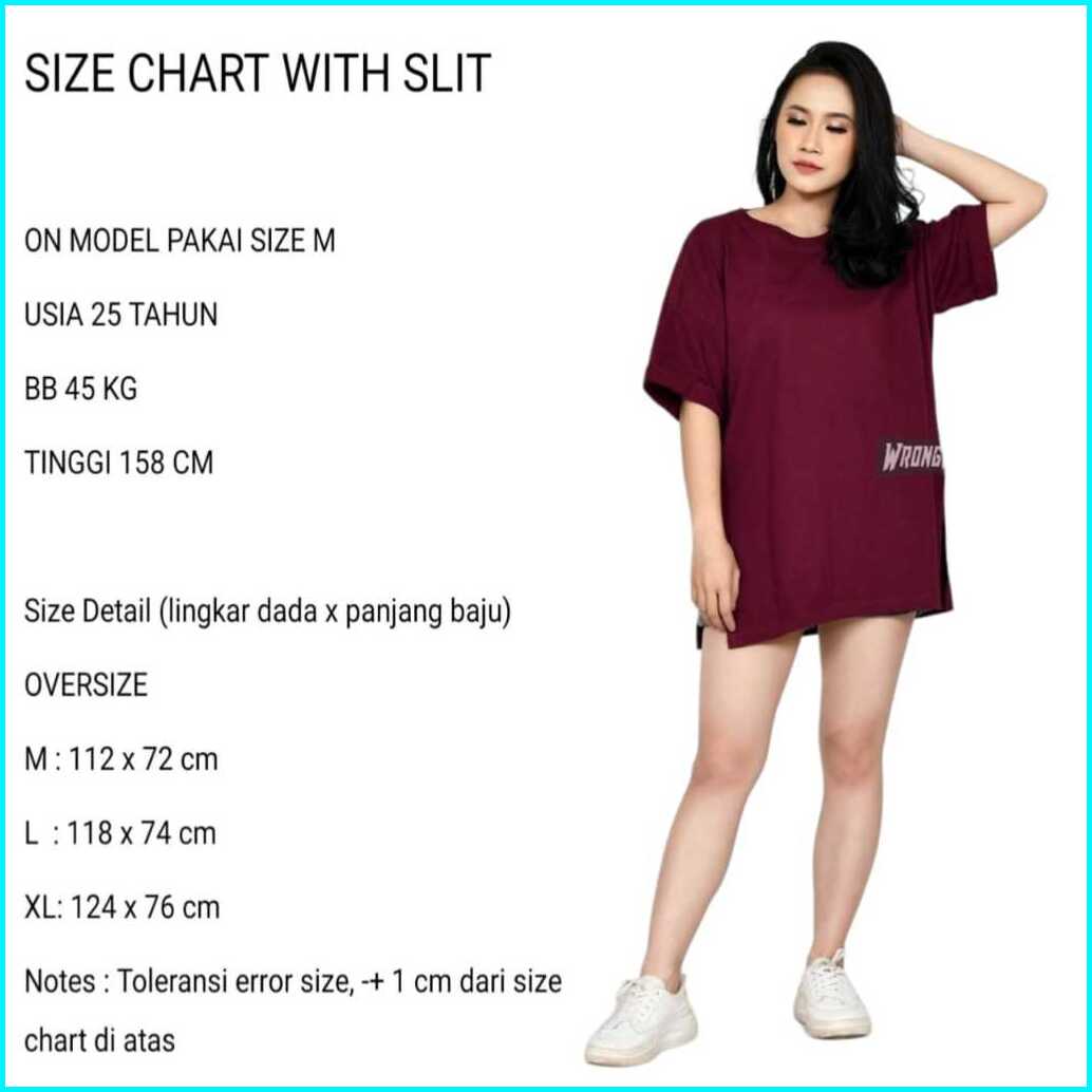 Kaos Over Size Wanita Belah Samping Lengan Stik Bahan Cotton Combed 24s Warna Merah
