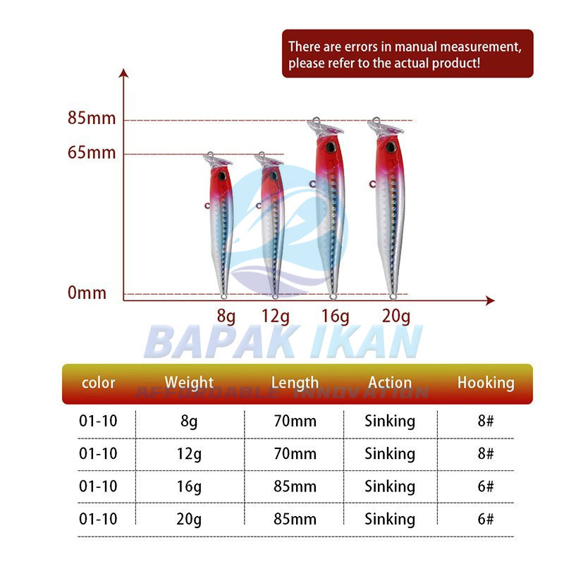 Bapak Ikan Umpan Pancing Minnow 8G 12G 16G 20G Cocok untuk Semua Lapisan Air Umpan Pancing Ikan Kecil Pike Bass Umpan Pa