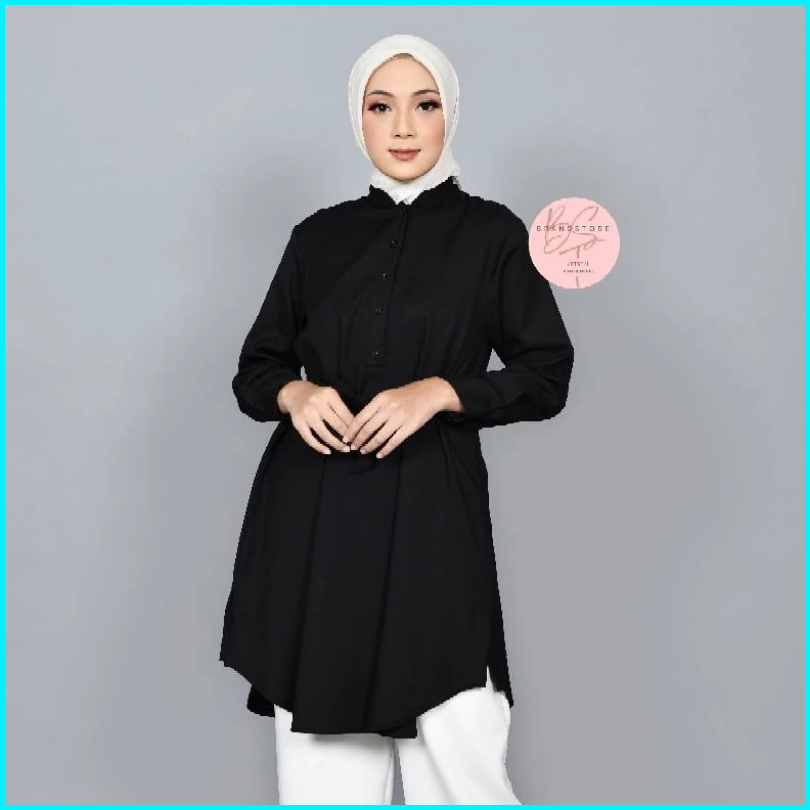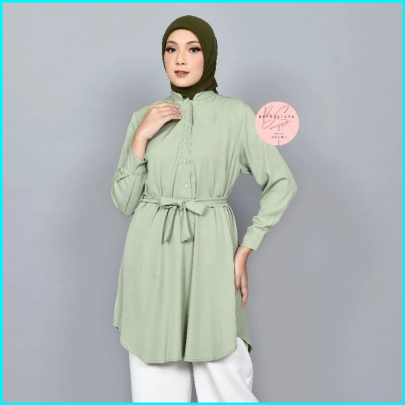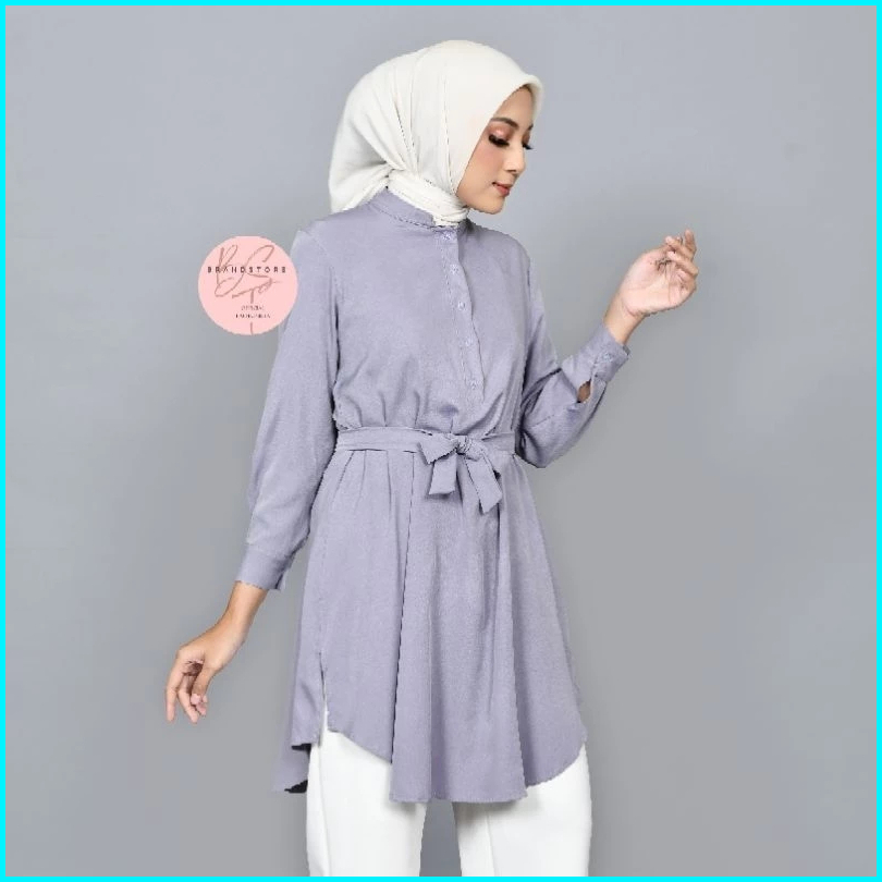 Brandstore - Zaskia Tunik Shakila Botega Atasan Blouse Wanita Polos Kasual Kekinian Belt