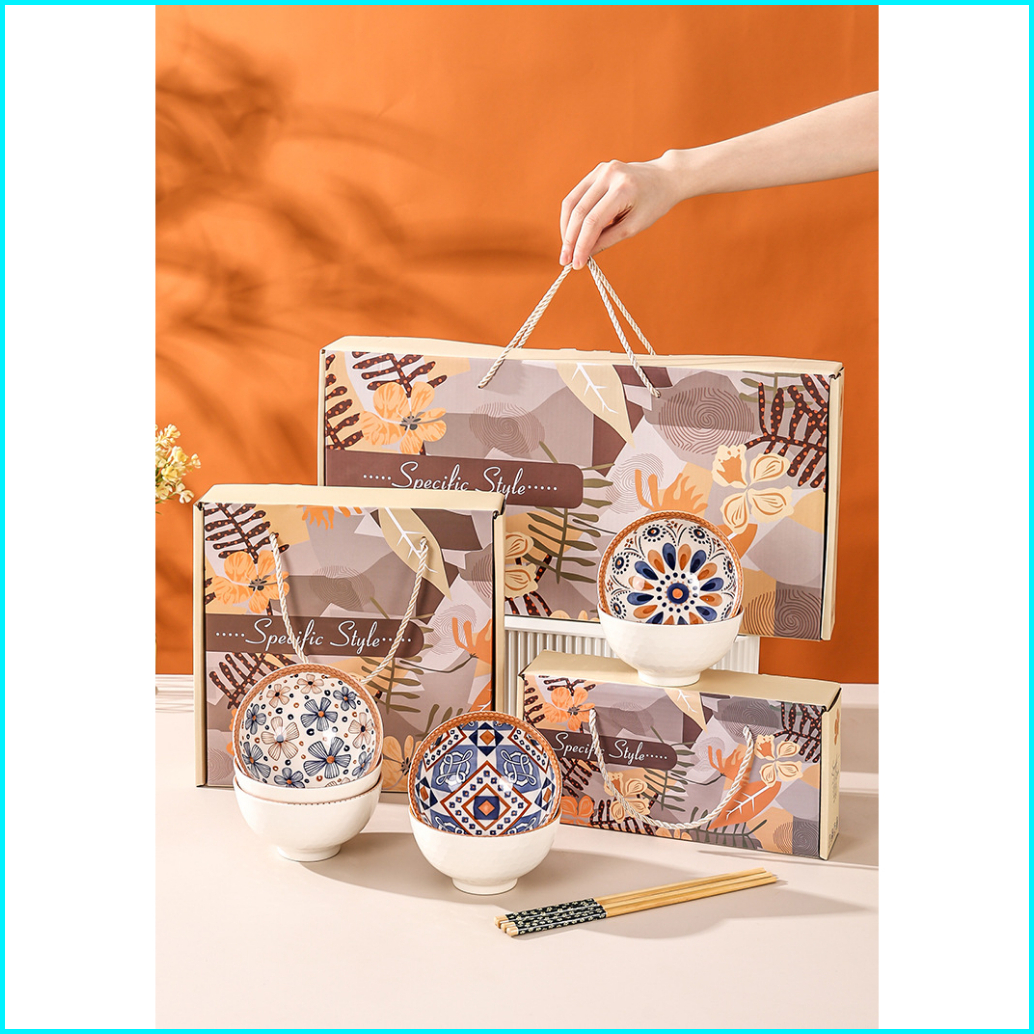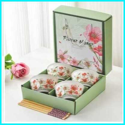 Cane Flower Mangkok Set 4 Jepang Set Sumpit Mangkok Keramik Kado Wedding Hampers Ultah Anniversary