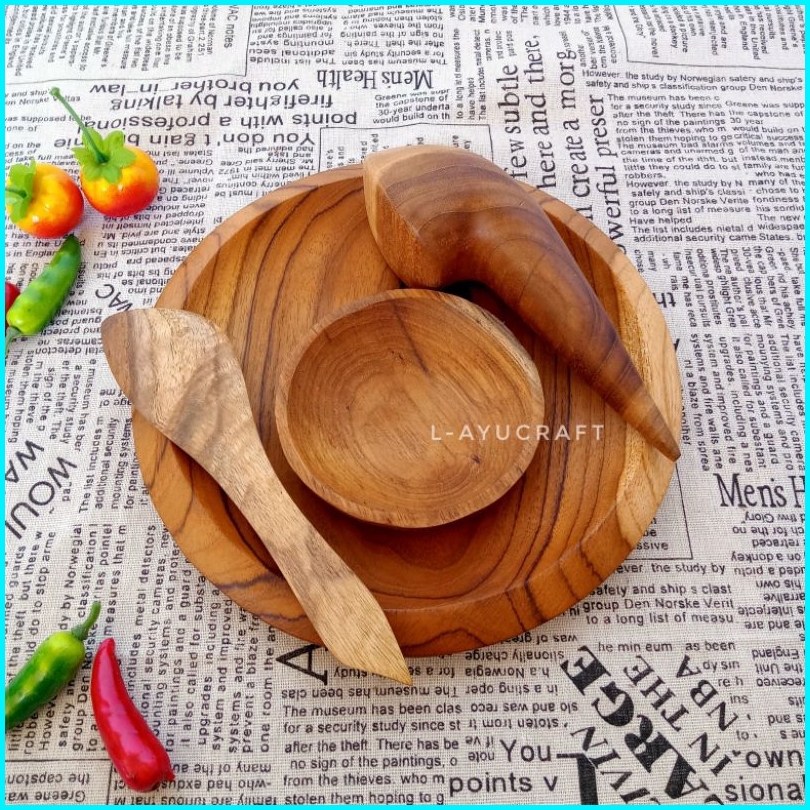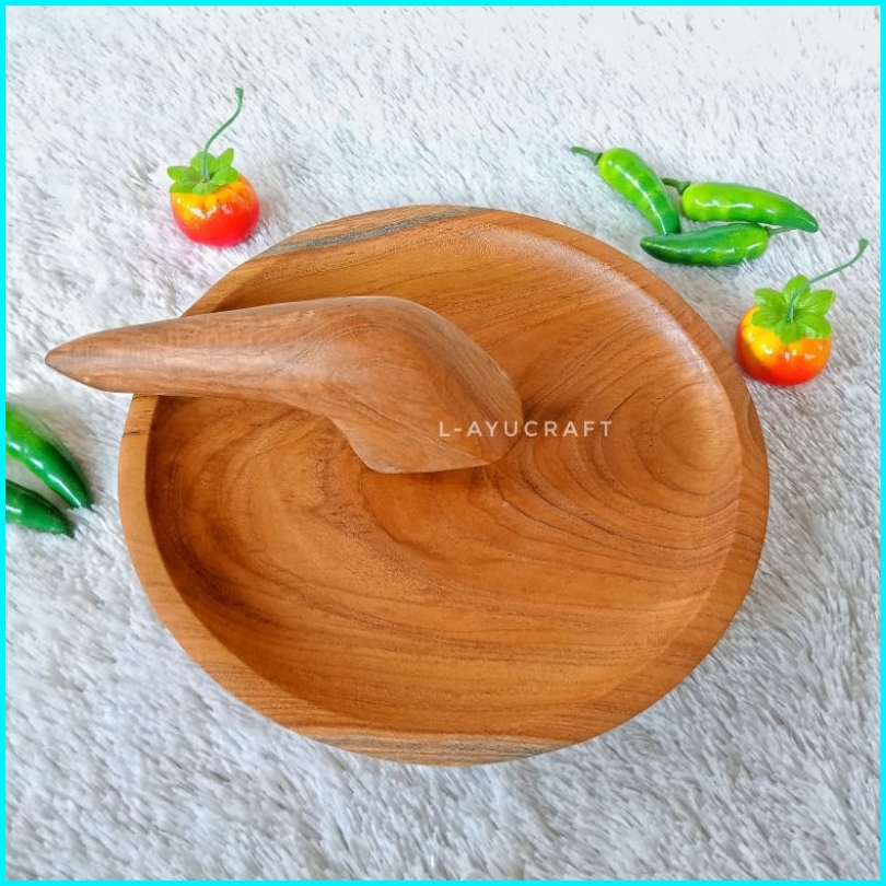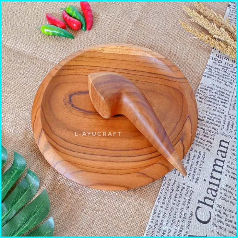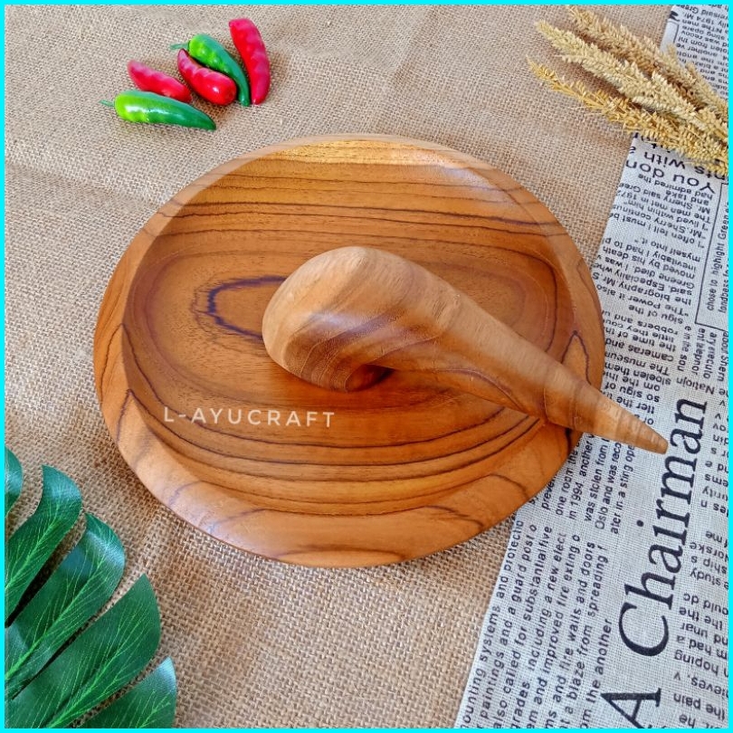 L-ayucraft Cobek Uleg Kayu Jati Bulat Satu Set