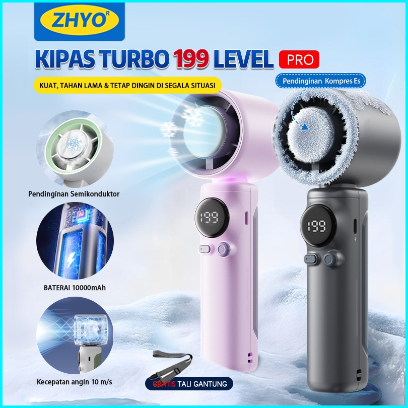 Zhyo 199 Tingkat Angin Kuat Kipas Angin Kecepatan Tinggi Dengan Pendingin Kompres Es Kipas Turbo Mini Portabel Pengisian
