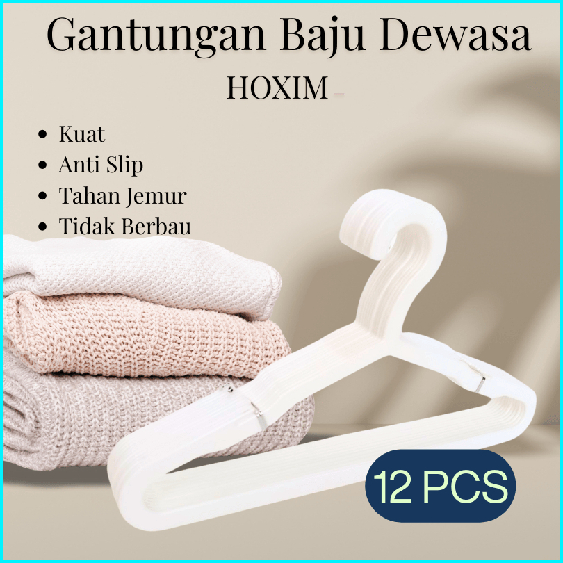 Gantungan Baju Plastik Hanger Baju 12pcs Hanger Baju Dewasa 41.5cm Kuat Tebal Hanger Plastik Gantungan Serbaguna Gantung