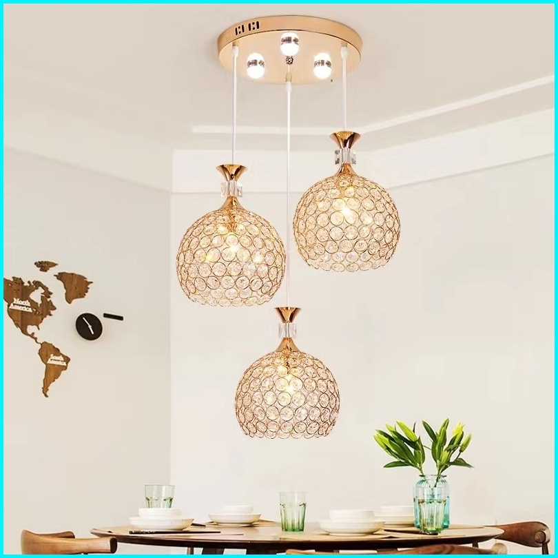 Lampu Gantung Minimalis Bulat 3 In 1 Lampu Kristal Ruang Tamu