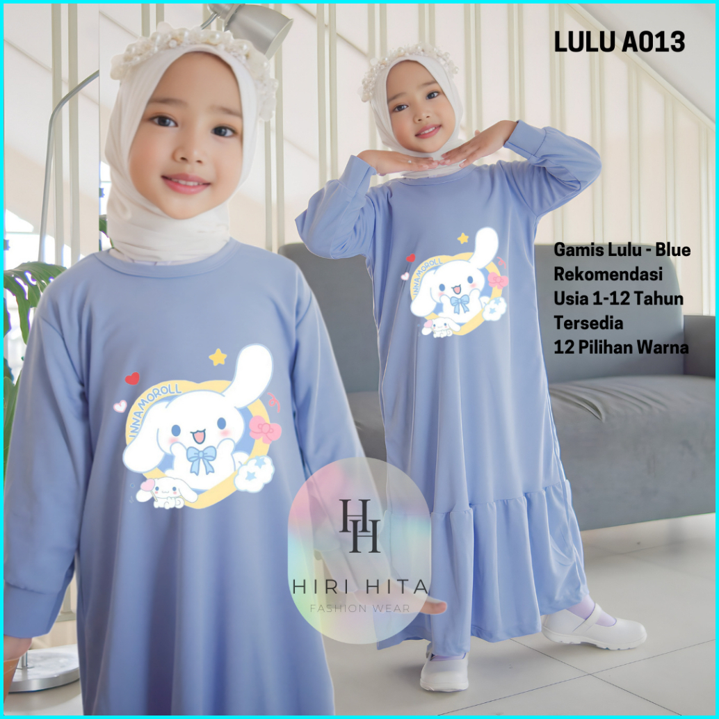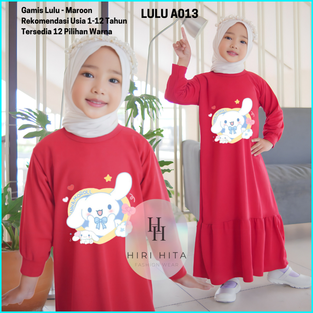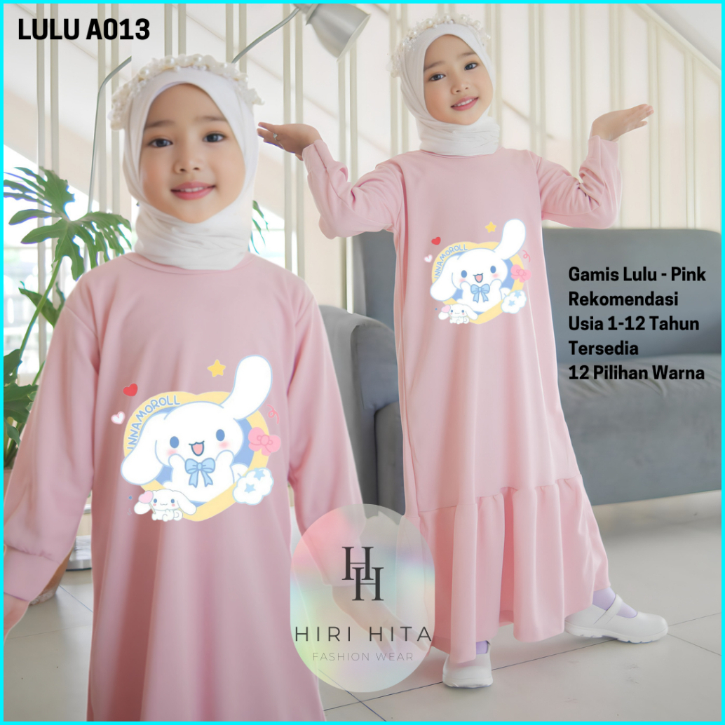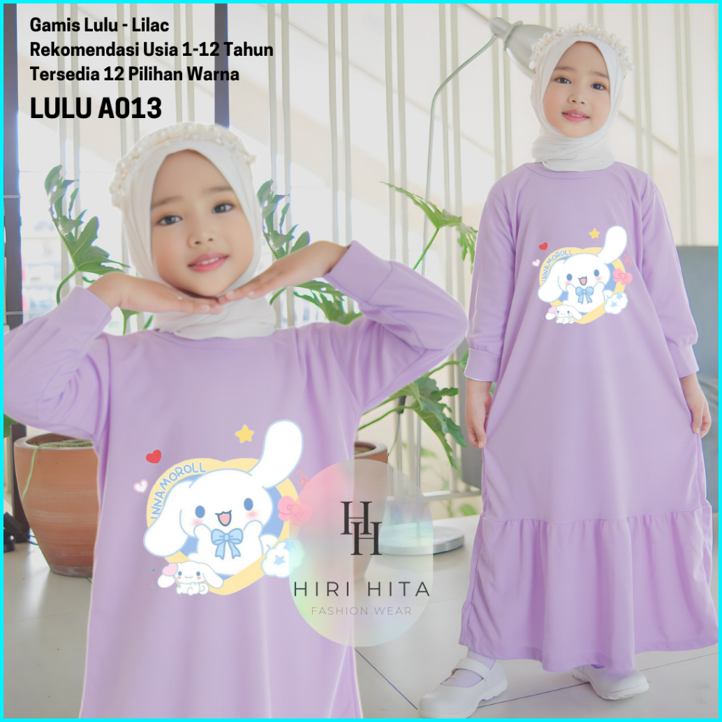 Hirihita A013 Baju Gamis Lulu Anak Perempuan Cinnamoroll Kuromi 12 Pilihan Warna 1-12 Tahun