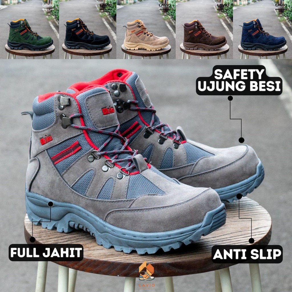 Lavio Sepatu Safety Boots Original Lapangan Proyek Full Jahit Ujung Besi | Sefty Shoes Geneva High