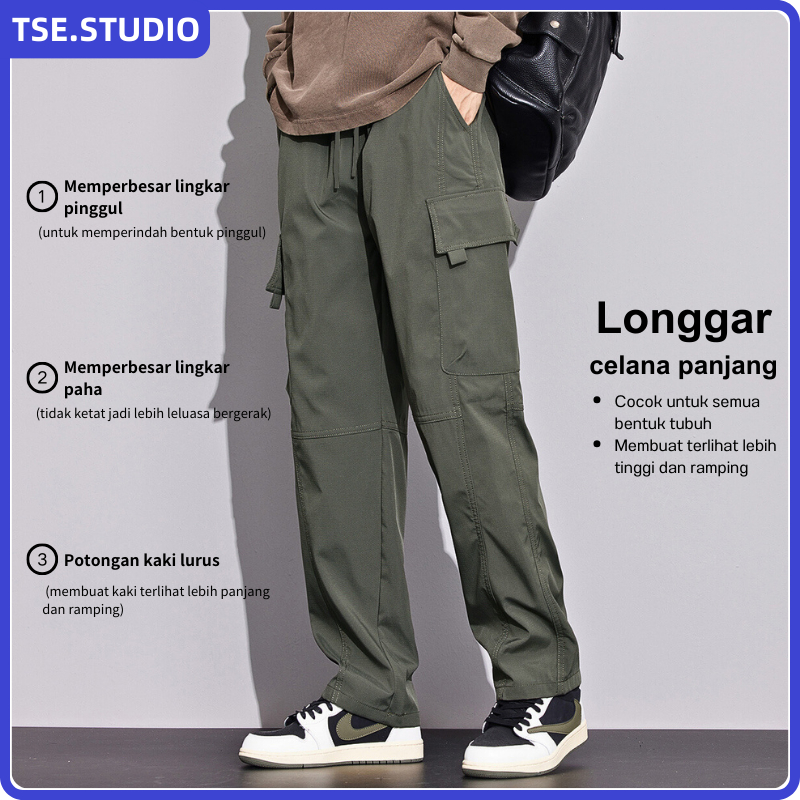 Celana Cargo Pria Korean Style Loose Straight Pants NEW Baggy Big Pockets Cargo Pants Oversize