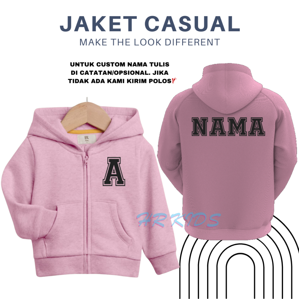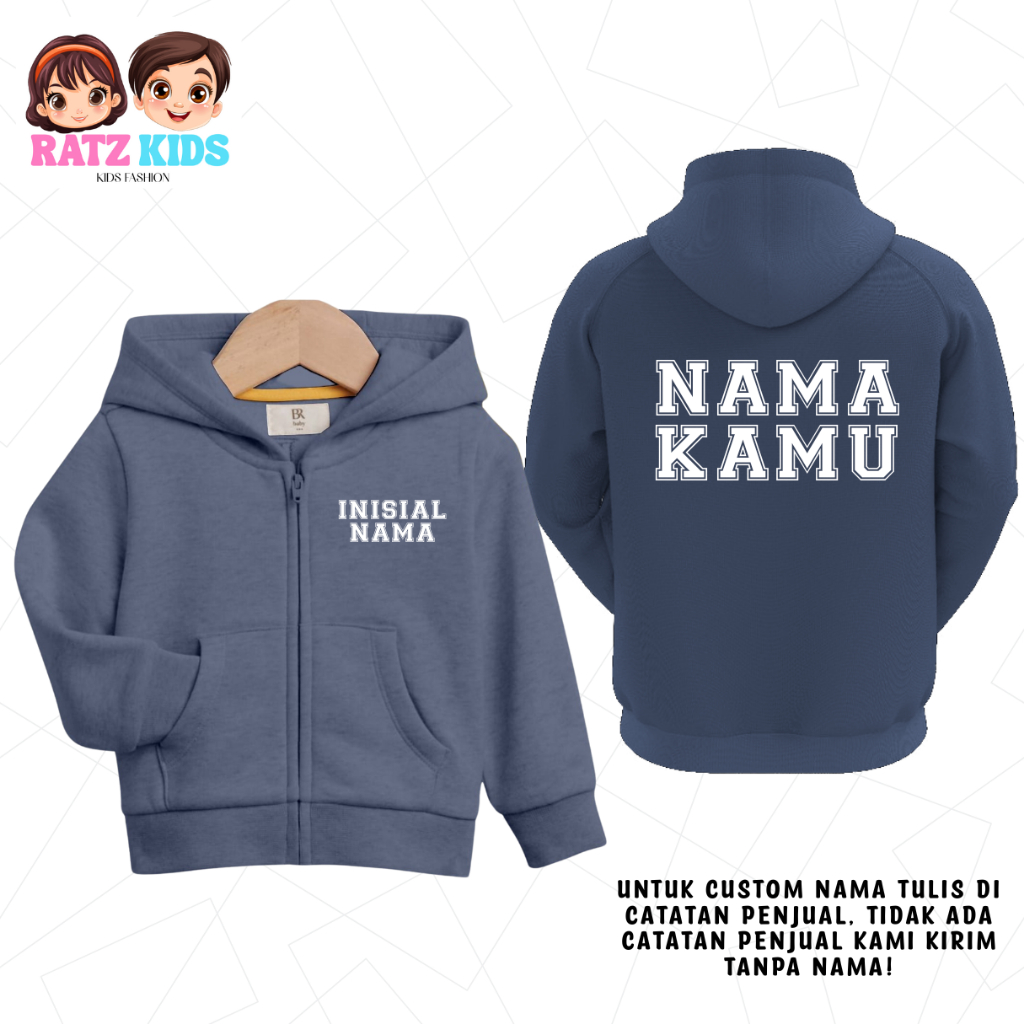 Jaket Zipper Anak Custom Nama+Inisial Usia 2-12Tahun Distro Unisex Perempuan Laki Laki