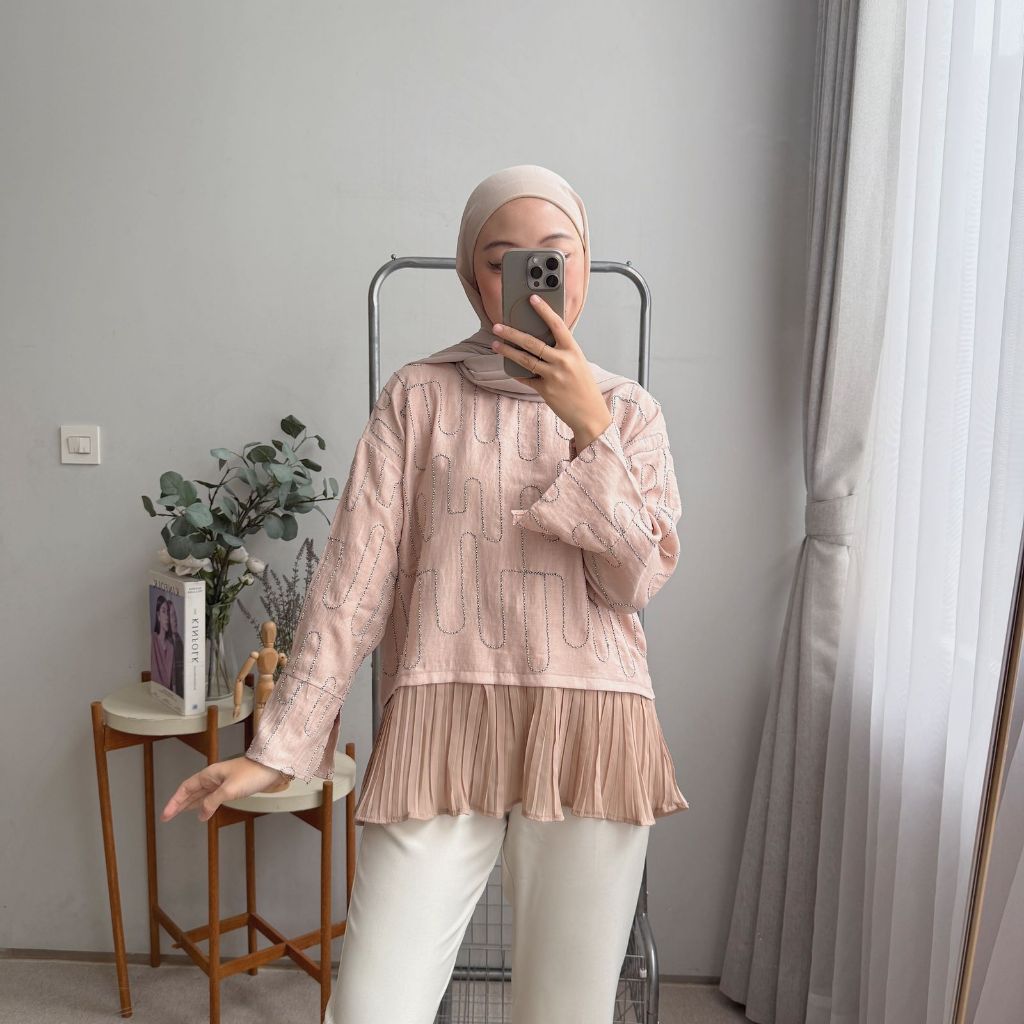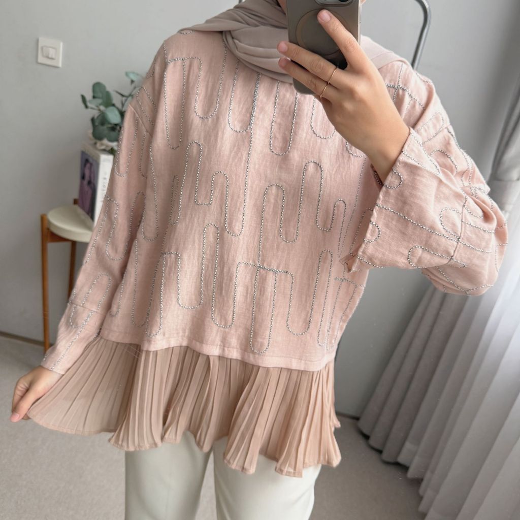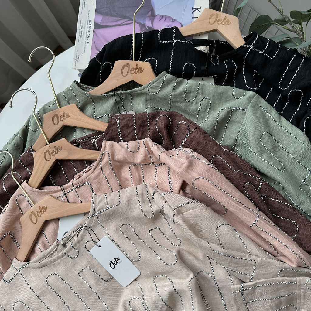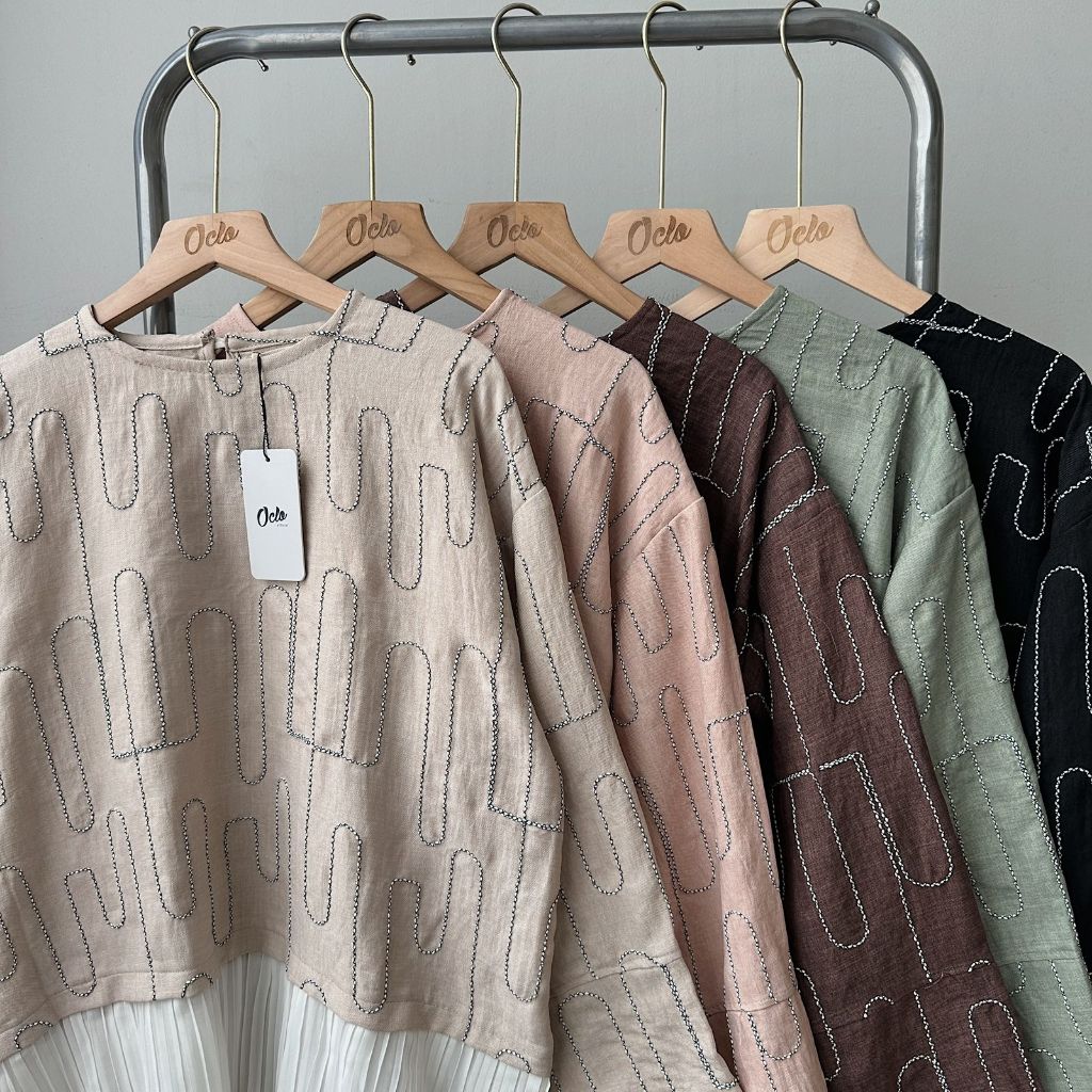Oclo Evelyn Blouse Bordir Wanita Casual Lengan Panjang Atasan Plisket Premium OCL01583