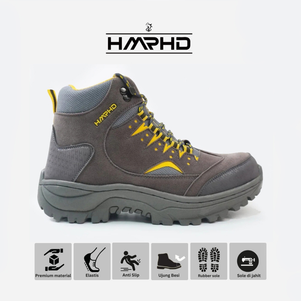 Hmrhd Sepatu Pria Safety Boots Mako High Grey Yellow Ujung Besi
