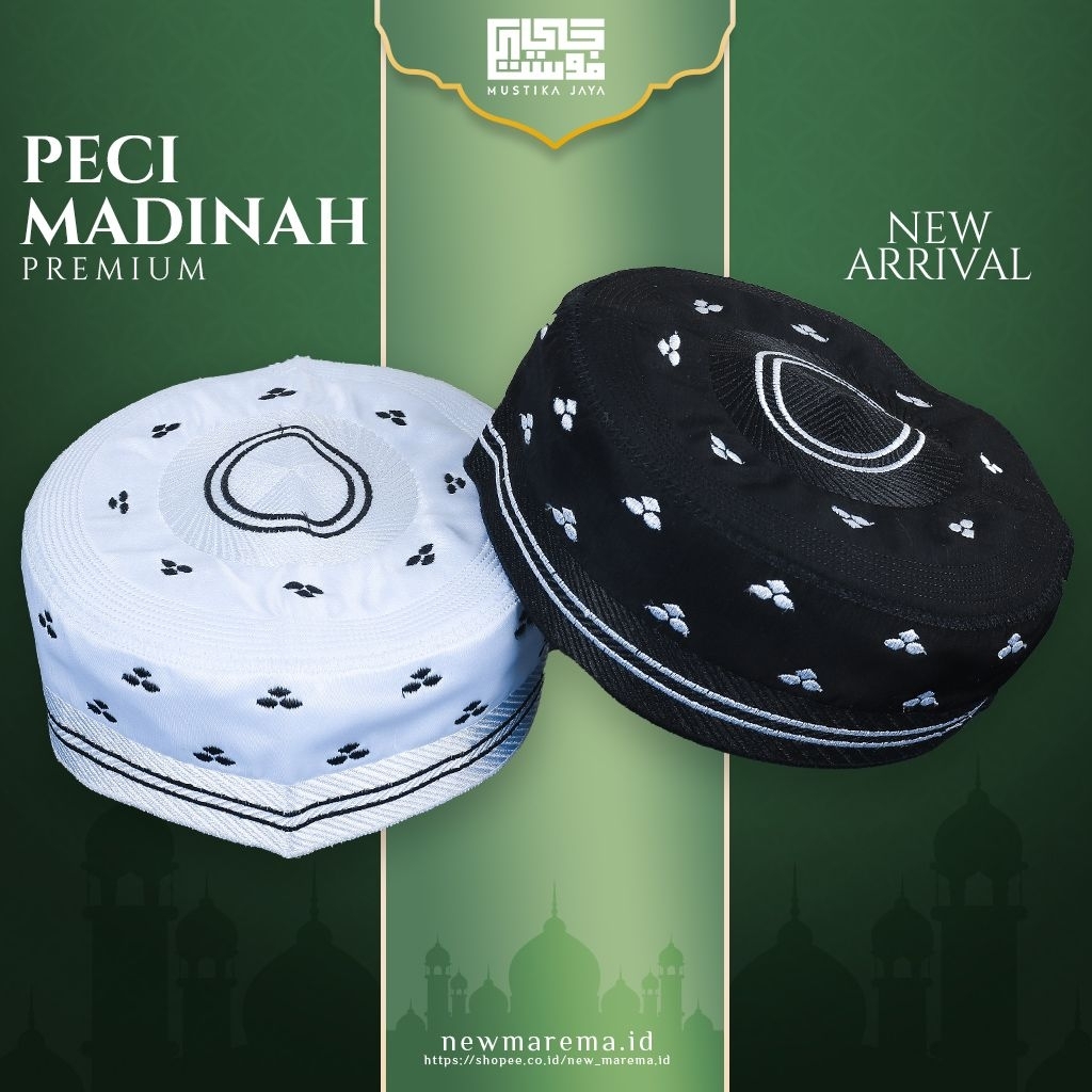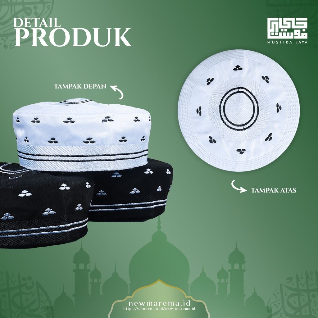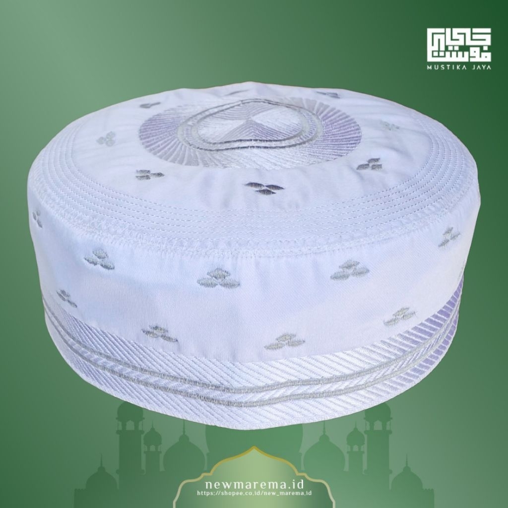 Peci Madinah Motip A-5 Bordir Kopiyah Haji Putih Songkok Bugis Haji Dan Umroh