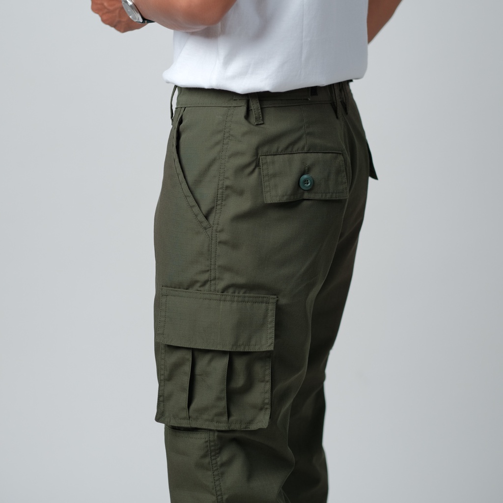 LIAN - Loosey Goosey Loose Cut Long Cargo Pants Olive Green Army Ripstop