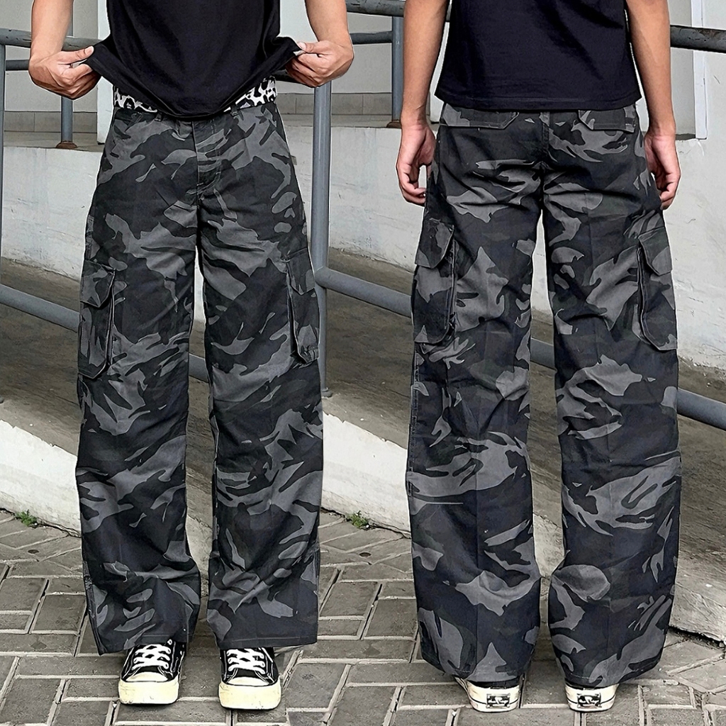 ORLEN DENIM - Celana Loreng Panjang Pria Cargo Camo Gombrong Skena Cargo Baggy Pants Loreng