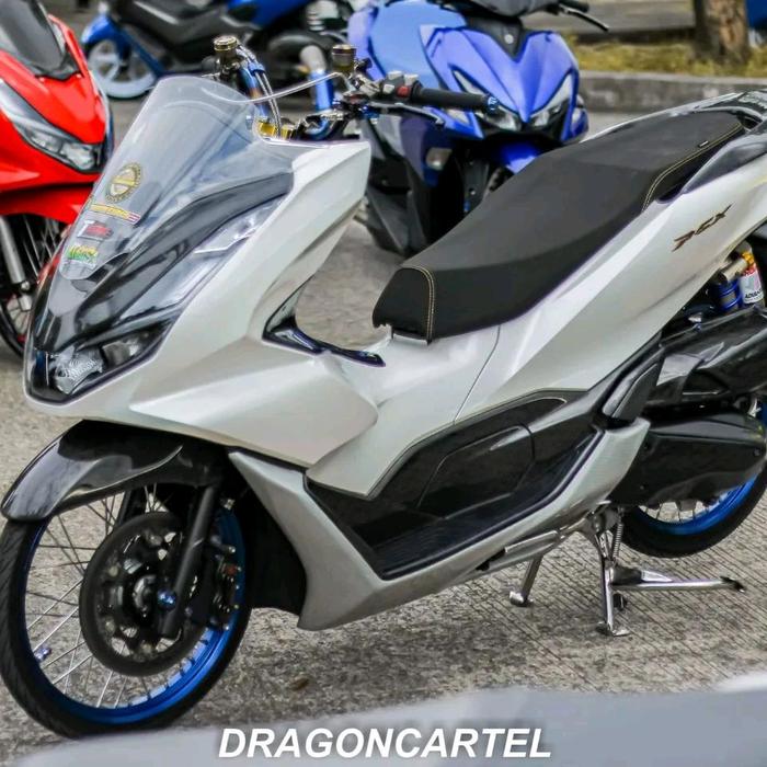 JOK SLIM MOTOR PCX 150/160 - AKSESORIS, MOTORCYCLE TINGGAL PASANG - PCX ROADSYNC 160 - HITAM BENANG PUTIH 13 TINGI, PNP