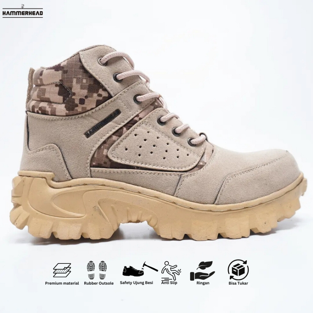Hammerhead Sepatu Safety Boots Ujung Besi Hiking Working Camo High Cream