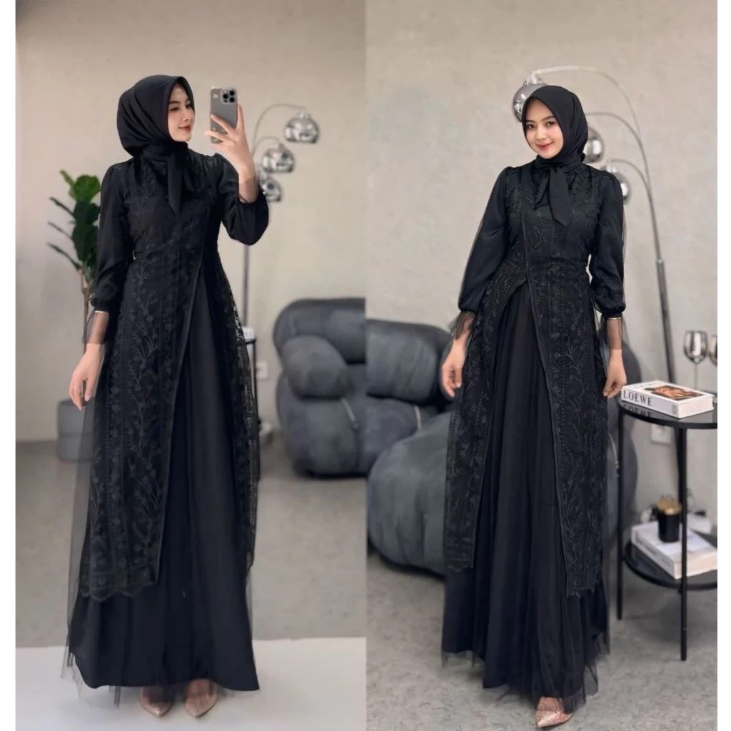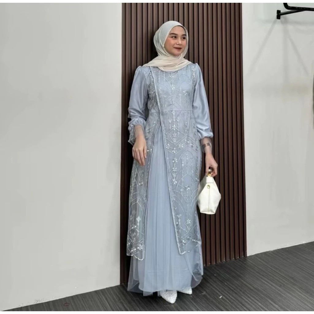 Kinar Dress Pesta Brukat Silk Kombinasi Tile Garden Premium Remaja Dewasa Wanita Kekinian
