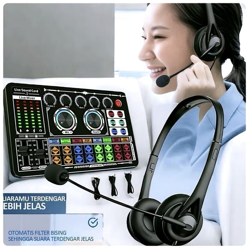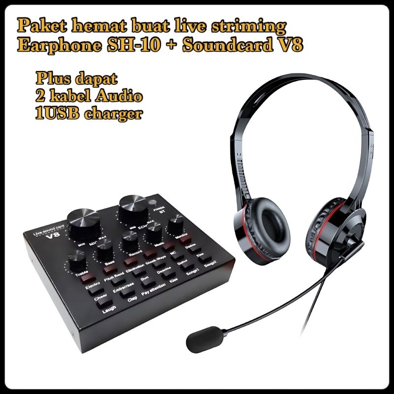 Paket Lengkap V8+S490 Set Sound Card Alat Live Streaming Plus Headphone
