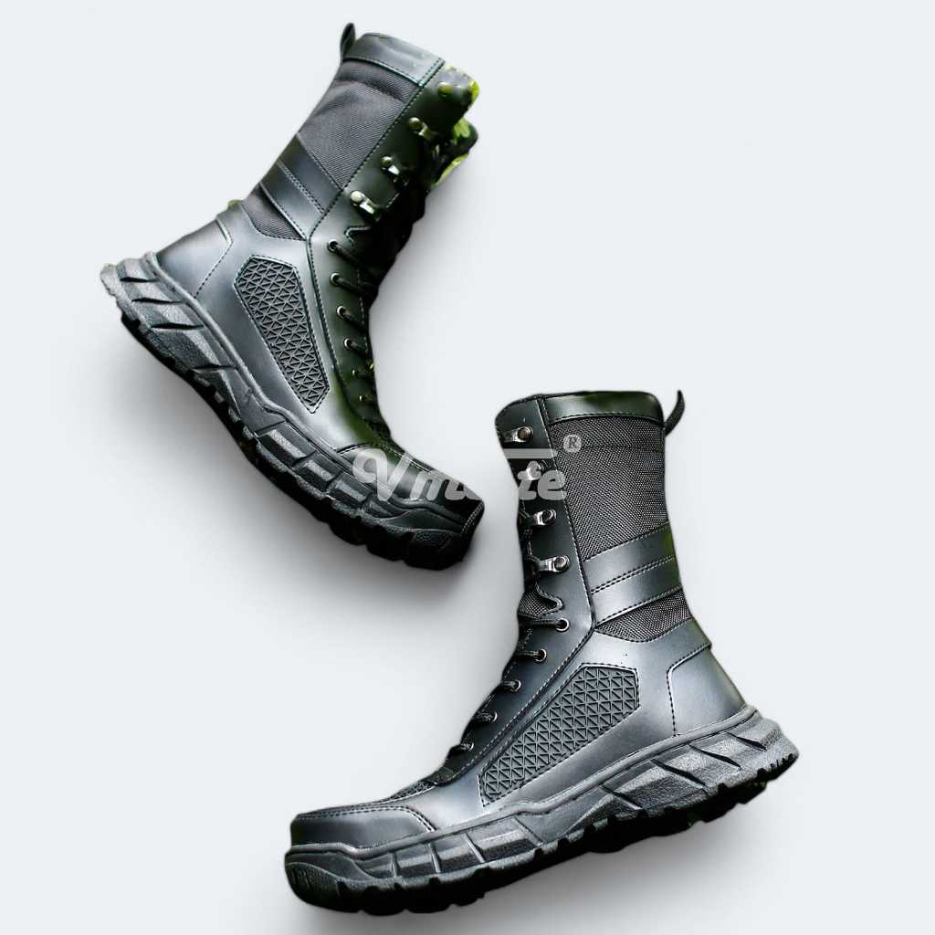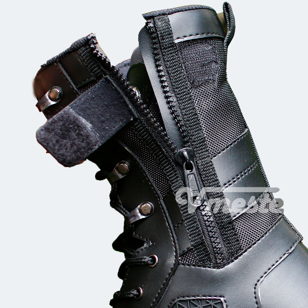 Vmeste - Sepatu Pdl Boa Raider Tni Polri Brimob Security Satpam Kulit Sintetis Hitam Doff Ujung Besi