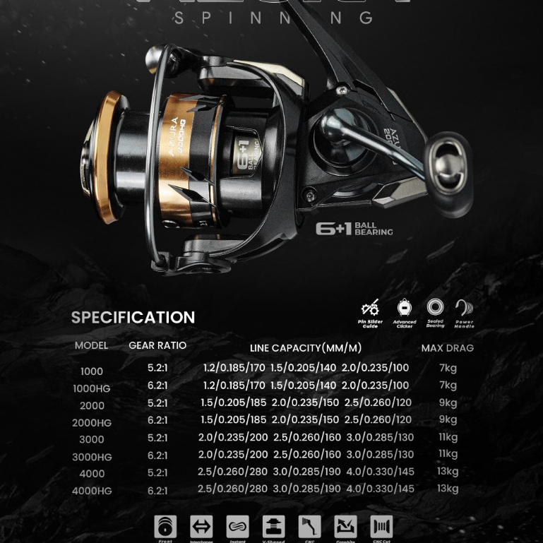 Reel Iroly Azura Power Handle 1000 2000 3000 4000